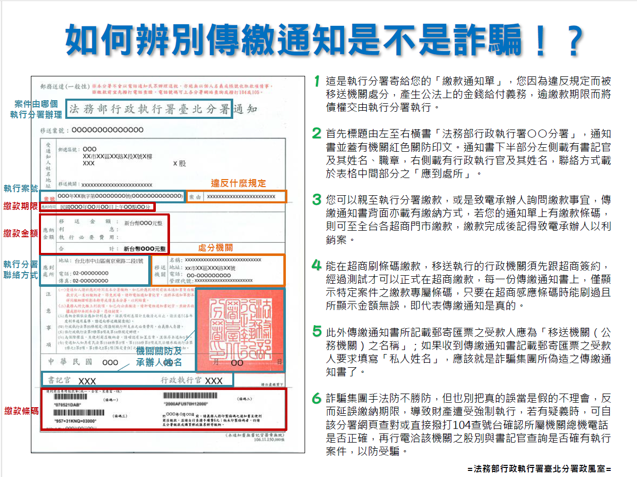 反詐騙宣導:《行政執行》如何辨別傳繳通知單是否為詐騙