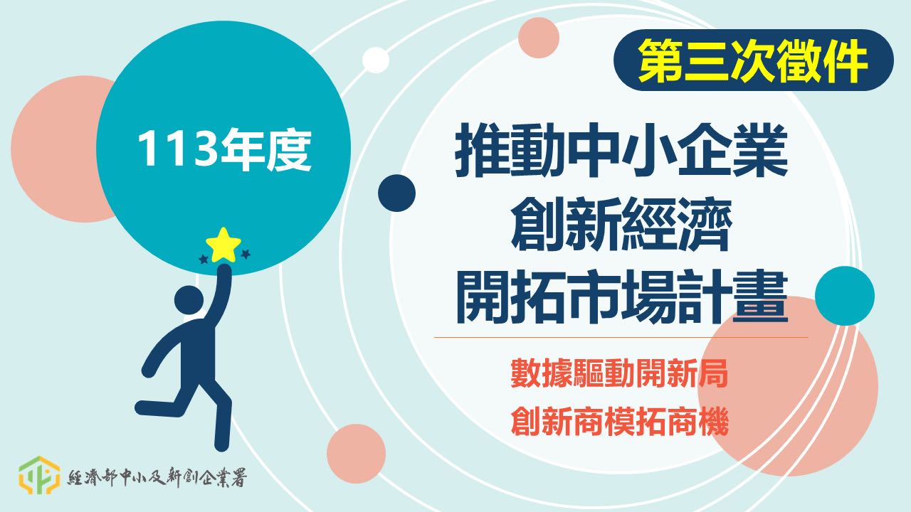 一、欲申請113年度「推動中小企業創新經濟開拓市場計畫」輔導者,可自113年4月19日起檢具計畫書提出申請。相關訊息歡迎洽詢財團法人商業發展研究院 李小姐,電話:02-7707-4940;謝小姐,電話:02-7707-4929。