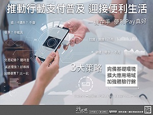行政院為加強宣導政府推動「加速行動支付普及」,特製作電子單張文宣。