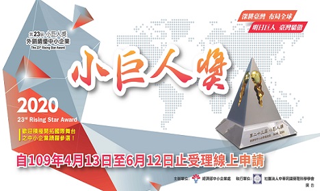 小巨人獎已邁入第23屆,已有312家企業獲獎,獲獎企業均表示,獲得小巨人獎對企業而言不僅是榮耀,更可增加諸多曝光機會,快速提昇企業能見度,為企業帶來無限商機!歡迎外銷績優中小企業踴躍參選!