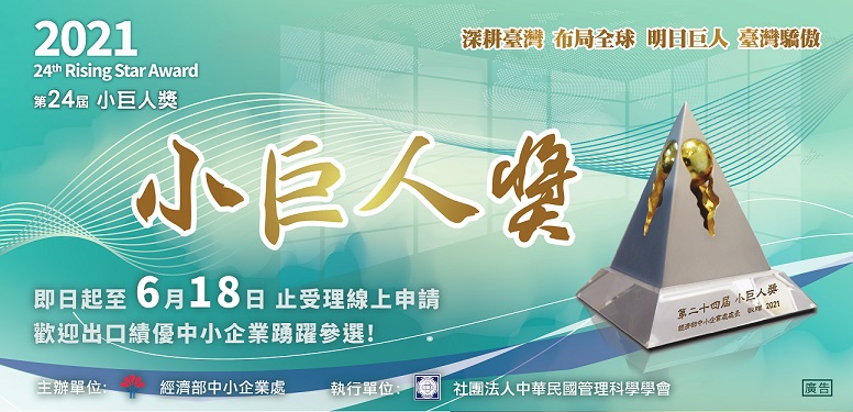 小巨人獎已邁入第24屆,已有327家企業獲獎,獲獎企業均表示,獲得小巨人獎對企業而言不僅是榮耀,更可增加諸多曝光機會,快速提昇企業能見度,為企業帶來無限商機!歡迎外銷績優中小企業踴躍參選!