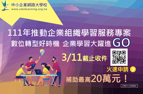 本專案提供中小企業「企業組織學習專區」網實整合資源,企業根據今年度發展目標與願景,自行提出人才能力提升教育訓練計畫,展開職能學習,搭配中小企業網路大學校之專屬企業專區平台服務,協助企業優化教育訓練品質、培養專業潛力人才,進而強化企業核心競爭力!