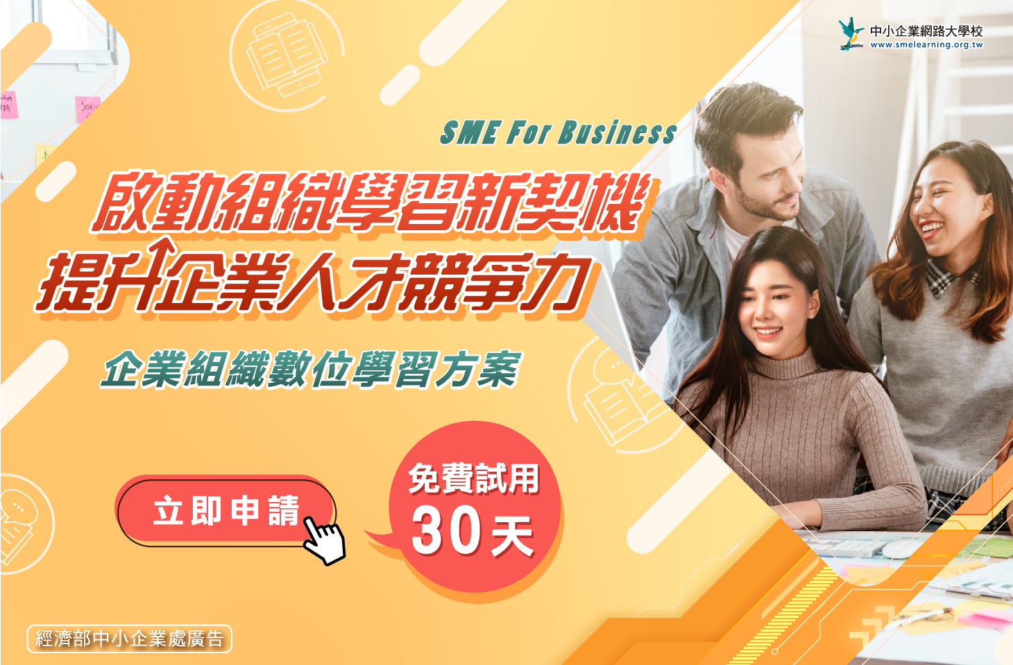 中小企業網路大學校學習網站,提供企業專屬的數位學習平台,在客製化的學習環境中,可依員工職能需求自由規劃課程,亦可上傳自製之數位學習教材,形式網路知識社群,降低教育訓練成本、培養企業潛力人才,以提升企業之核心競爭力,創造企業新價值!