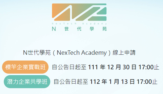 為加速中小企業數位轉型及企業傳承進程,提升臺灣中小企業競爭力,訂定「中小企業接班傳承數位成長計畫」,深化數位經管人才領導知能及創業家精神,並透過「理論-實務-理論」方式聚焦輔導成效,建構「N世代學苑」,依照中小企業數位轉型階段提供兩種班別供選擇: