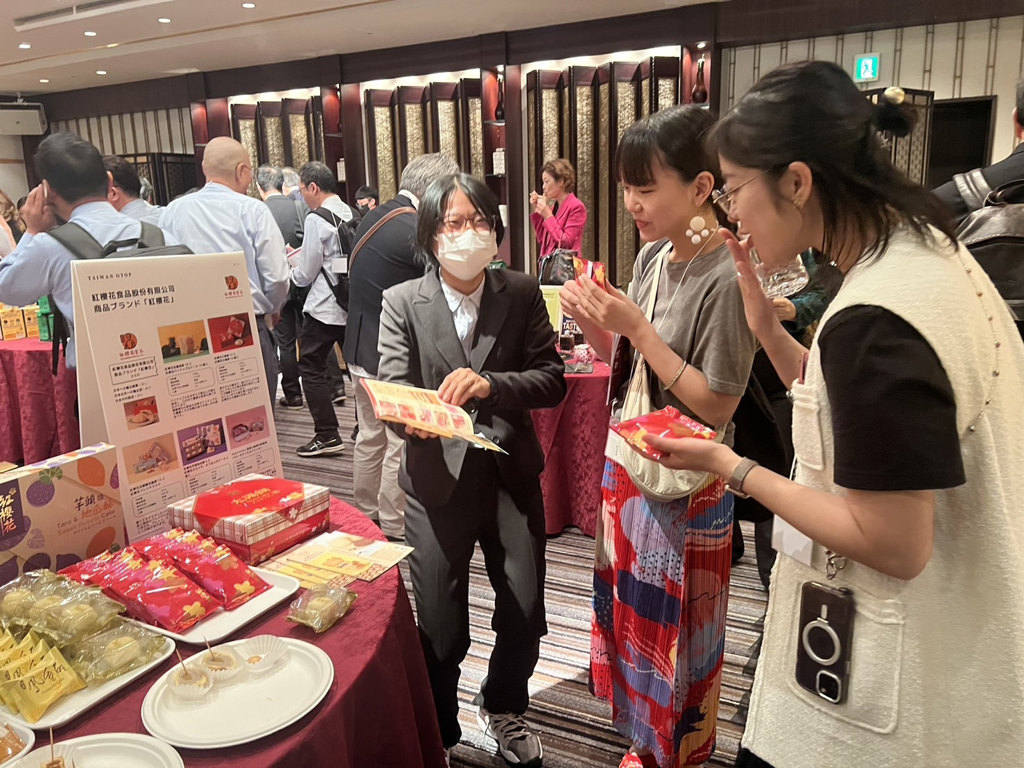 為協助臺灣城鄉特色產業業者拓展國際市場,經濟部中小及新創企業署陳秘順代理署長偕同28家臺灣城鄉特色企業百項產品,於本(113)年5月29日(星期三)東京雅敘園飯店4樓飛鳥廳及孔雀廳,舉辦「臺灣食品媒合及試吃會」,逾百位日本通路商代表及相關支援服務企業熱情參與,駐日經濟文化代表處橫濱分處張淑玲處長及駐日經濟組何坤松副組長亦到場共襄盛舉,搭橋臺灣業者掌握消費市場需求及加速鏈結日本在地通路商及進口商,擴大業者海外商機。