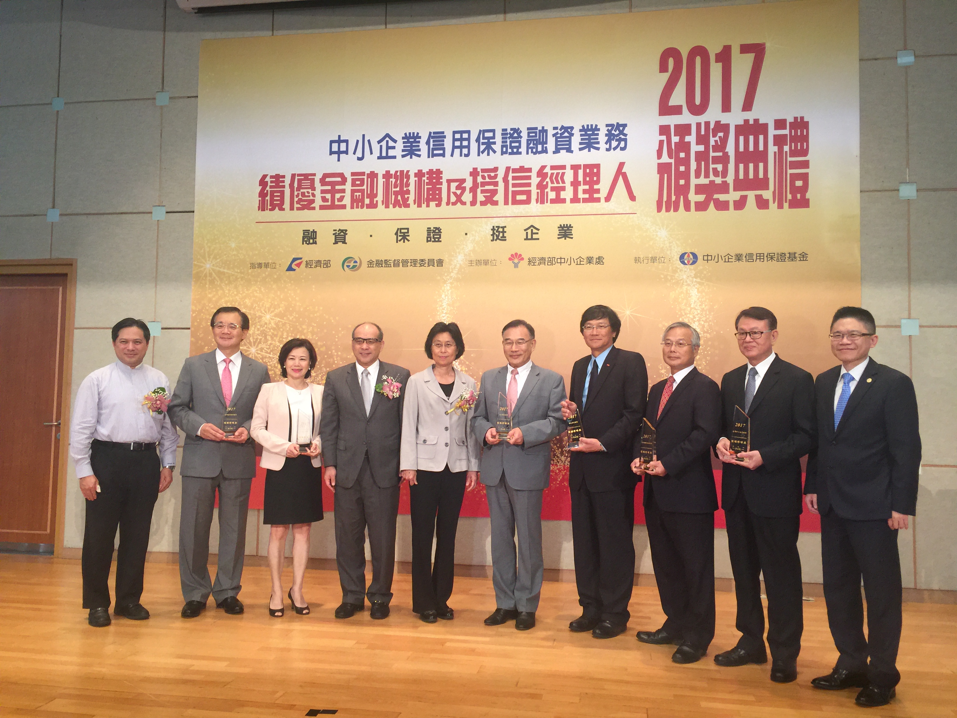 一、「信保夥伴獎」:第一商業銀行、玉山商業銀行、臺灣中小企業銀行、台新國際商業銀行、中國信託商業銀行、合作金庫商業銀行及彰化商業銀行。授信經理人則有第一商業銀行等9家金融機構之18位績優經理人獲獎。