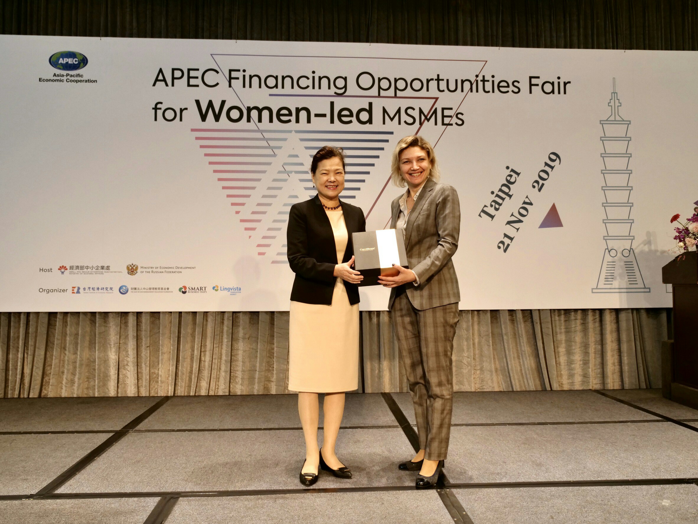 經濟部王美花次長親自出席「APEC女性微中小企業籌資商機論壇」,表達對於女性企業的支持與鼓勵,致詞時更引述今(108)年「APEC第25屆中小企業部長會議」重點,強調APEC會員體透過資金取得、微小型企業數位化與國際化三方面,將更有效地增進女性經濟賦權。「APEC女性微中小企業籌資商機論壇」匯集來自俄國、美國、馬來西亞、印尼、泰國、菲律賓、越南、墨西哥及我國等9個經濟體公私部門專家及女性企業代表,共同探討女性企業籌資議題。