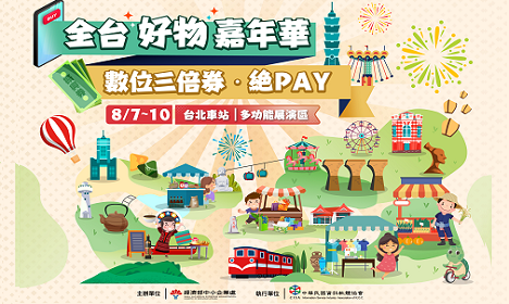 為促進地方經濟,推廣全台在地好物,經濟部中小企業處訂於8月7-10日假台北車站一樓多功能展演廳舉辦「全台好物嘉年華,數位三倍券‧絕Pay」市集,共有來自全國北、中、南、東及離島地區,16縣市超過340家的中小微企業參展,場面熱鬧盛大。