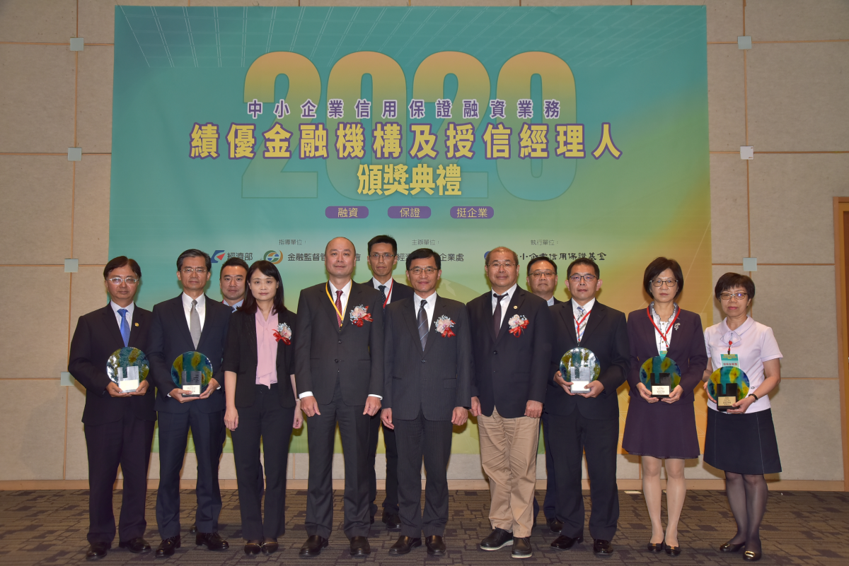為肯定金融機構及授信經理人積極透過信用保證機制加強對中小企業融資,經濟部於今(109)年8月25日舉行「2020中小企業信用保證融資業務績優金融機構及授信經理人頒獎典禮」,由中小企業處何處長晉滄、金融監督管理委員會許副主任委員永欽及中小企業信用保證基金董事長李耀魁擔任頒獎人,表揚金融機構及授信經理人積極運用信用保證機制對中小企業融資。
