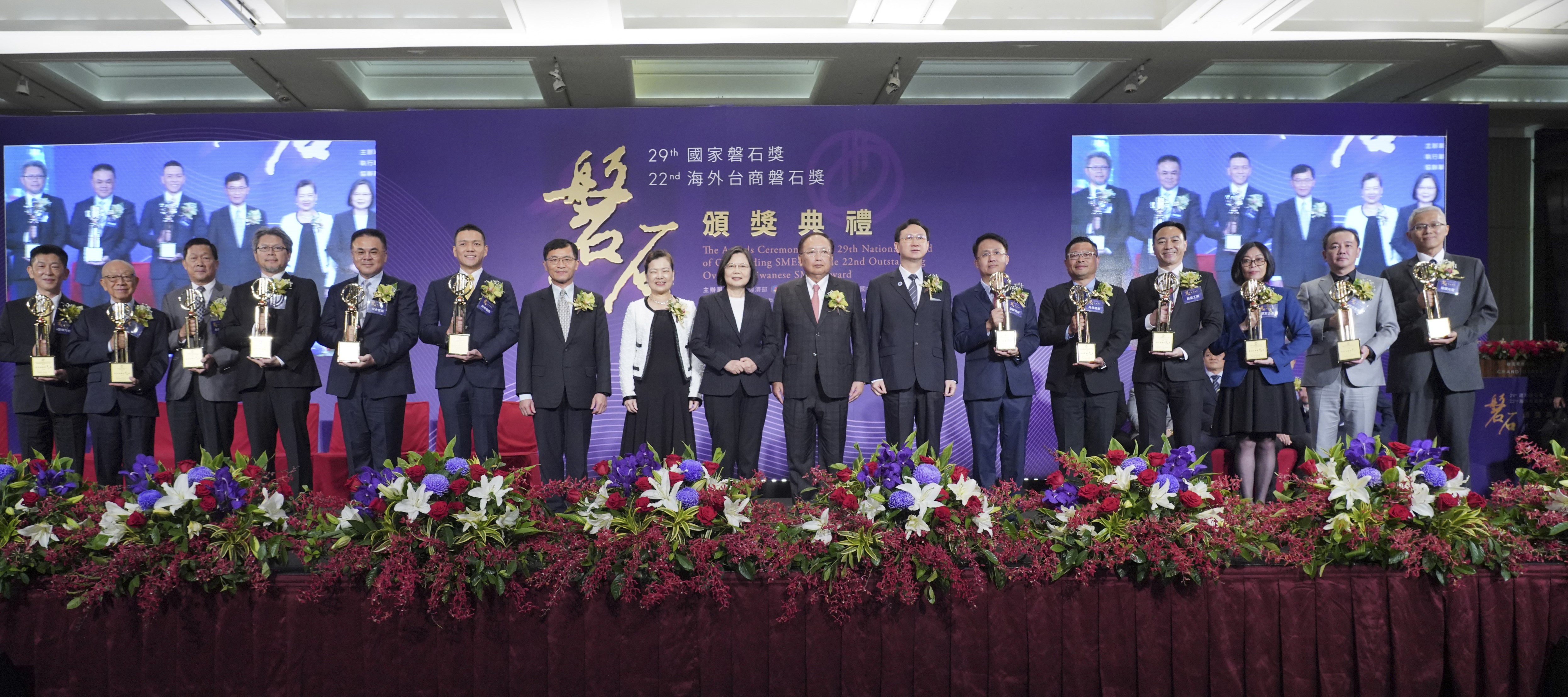 第29屆「國家磐石獎」及第22屆「海外台商磐石獎」得獎名單出爐,本(109)年度第29屆「國家磐石獎」選出12家優秀企業、第22屆「海外台商磐石獎」有5家企業獲獎,每家得獎企業不僅代表中小企業最高榮耀,也身負中小企業卓越典範的使命。頒獎典禮於本年11月3日(二)下午2時30分於台北君悅酒店舉行,由蔡英文總統親臨頒獎,現場超過700位嘉賓與會,一同分享喜悅與榮耀。