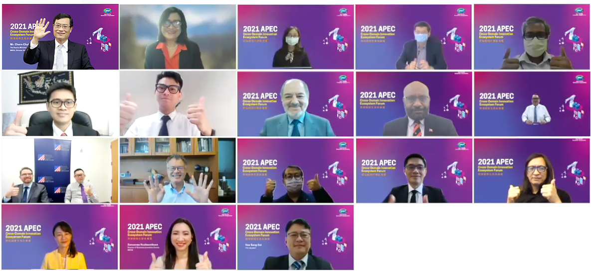 為促進中小企業發展跨域創新,並結合數位平台以形成生態系,強化競爭力,我國與菲律賓提出「APEC 跨域創新生態系倡議:透過跨APEC區域數位平台促進中小企業包容性成長」,並由經濟部中小企業處、高雄市政府經濟發展局、菲律賓貿易及工業部於今(2021)年8月25日以線上方式,協力舉辦「APEC跨域創新生態系論壇」,邀請多個會員體代表、跨域創新生態系典範中小企業及新創共襄盛舉。另外,本次論壇也邀請我國及各會員體最佳實踐企業,於虛擬實境場館展示創新產品及服務,亦為活動亮點之一。