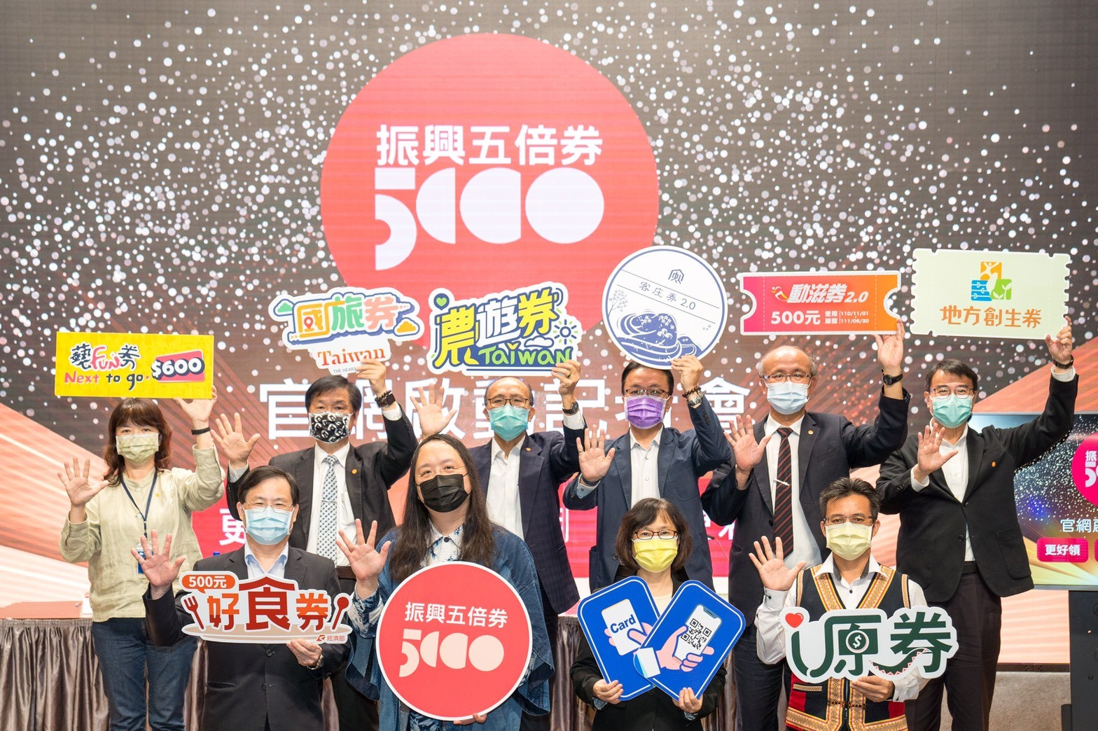 為利民眾及店家更瞭解即將上路的振興五倍券,及各部會加碼券,達成「更好領、更好用、更刺激」的目標,行政院政務委員唐鳳及加碼券八大部會等代表,今(15)日於行政院舉行「五倍券官網啟動記者會」,透過官網功能介紹,讓民眾更瞭解及掌握五倍券數位綁定、紙本預訂及八大部會加碼券登記、抽籤等方式,讓振興五倍券加碼再升級。