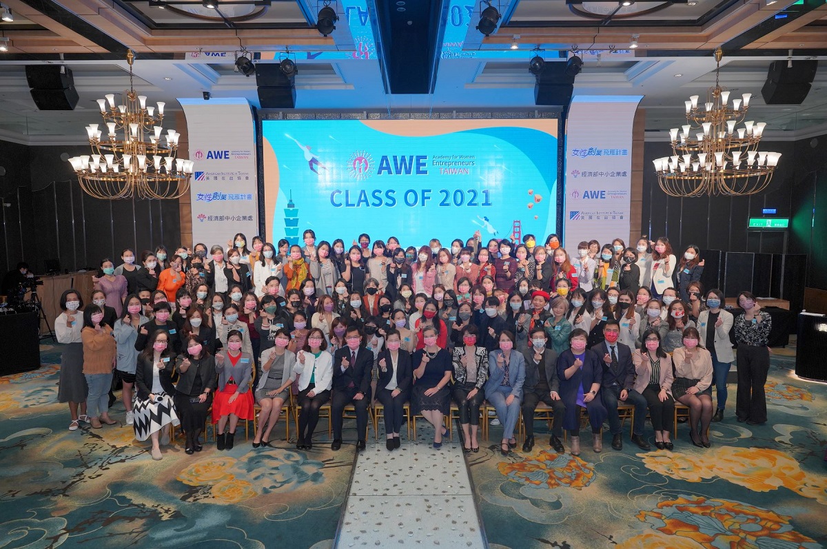 AWE計畫自今年3月8日國際婦女節起跑後,有多達400多位女性創業家報名,經歷書審與英文面試後,入選133位學員。學員經過3場線上產業小聚、4場北中南企業參訪暨數位行銷工作坊,並完成「築夢計畫」(DreamBuilder)的13堂線上培訓課程後,已有104位學員符合結業資格,順利取得證書。
