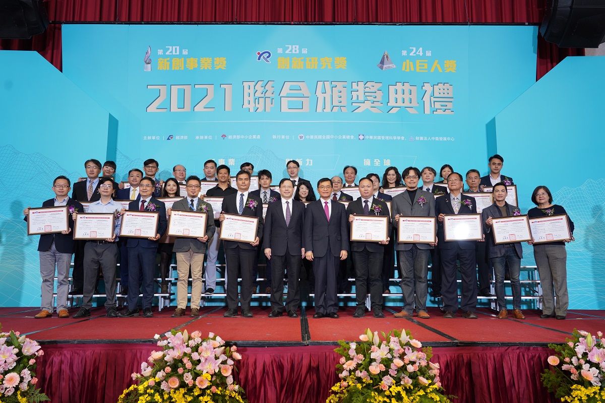 經濟部為推動創新經濟,營造優質的創業環境與鼓勵新創事業,及表揚具國際競爭且高成長之中小企業,於11月22日(一)下午在臺大醫院國際會議中心舉行「新創事業獎、中小企業創新研究獎暨小巨人獎」聯合頒獎典禮,本(110)年度共有66家優秀企業得獎,包含20家新創企業獲選新創事業獎、30件創新標的獲創新研究獎及16家外銷績優企業當選小巨人獎。在全球疫情延燒期間,得獎企業仍能保持穩步營運與創新動能,表現亮眼。經濟部林全能次長除親臨頒獎及祝賀外,並勉勵在場企業能持續因應變局轉型升級,以提升產業競爭力。