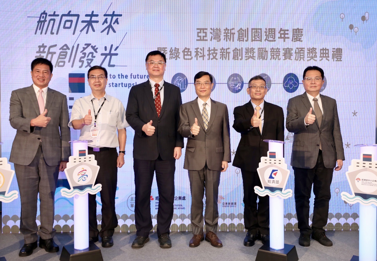 經濟部在高雄打造「亞灣新創園」營運將滿一週年,今日(11月7日)以「航向未來,新創發光」為主題舉辦週年慶活動,併同「綠色科技新創獎勵競賽」頒獎典禮及新創展示熱鬧舉行,經濟部次長陳正祺、高雄市副市長羅達生,競賽出題大廠如台積電、友達、日月光等高層代表,及美國在台協會高雄分處、日本台灣交流協會等國際友人、新創團隊及國際加速器等皆蒞臨現場,共同見證亞灣新創園的創新能量與培育成果。