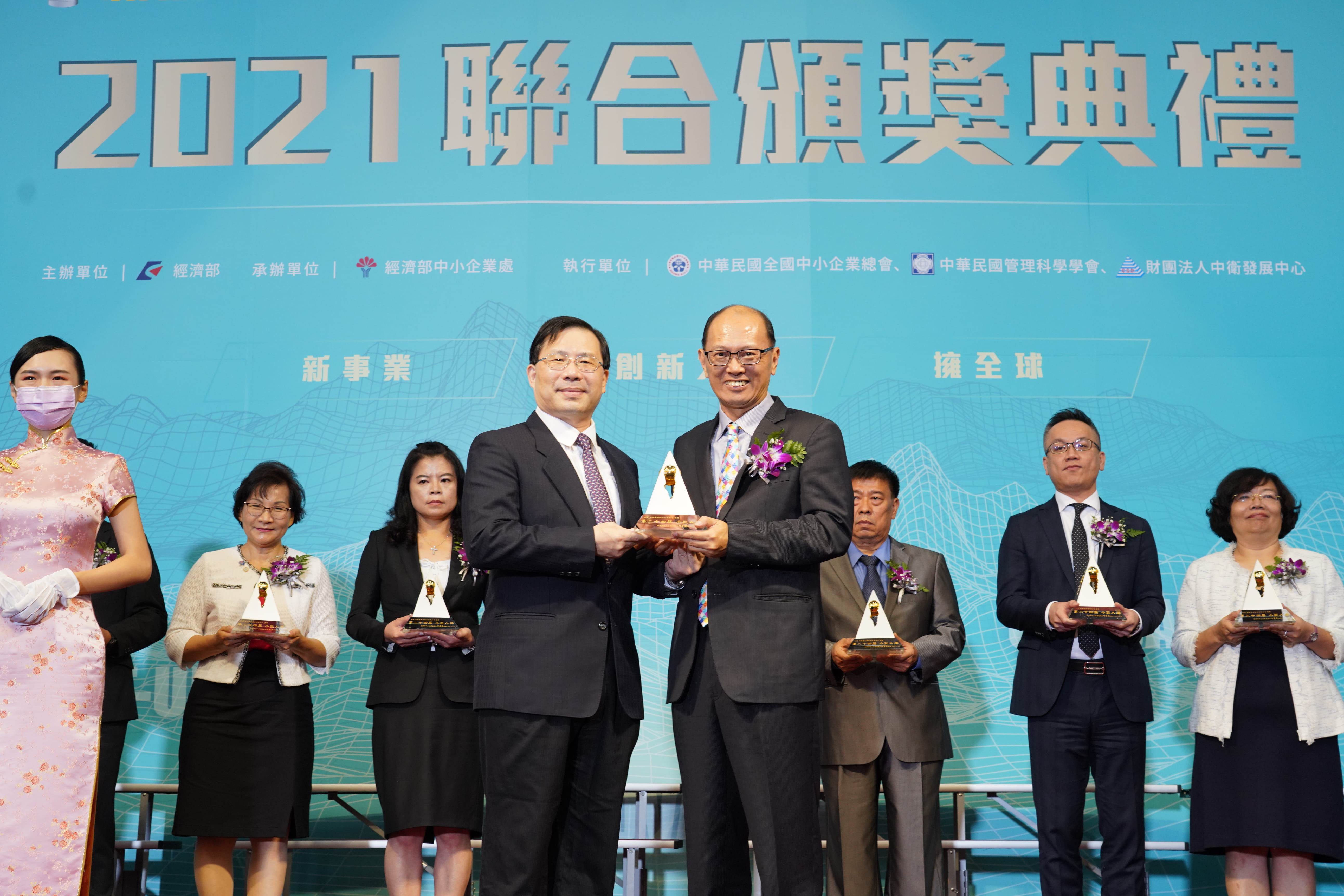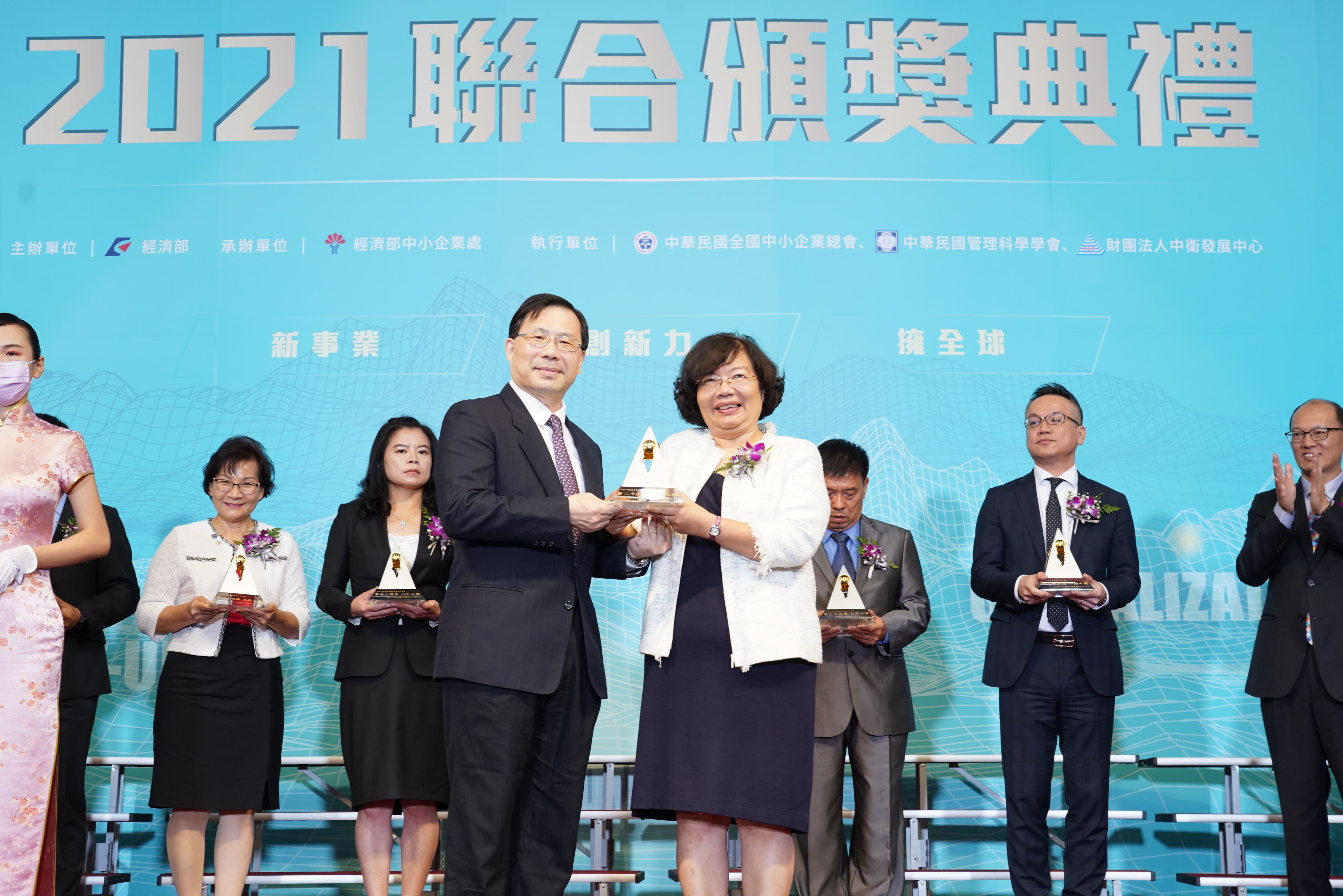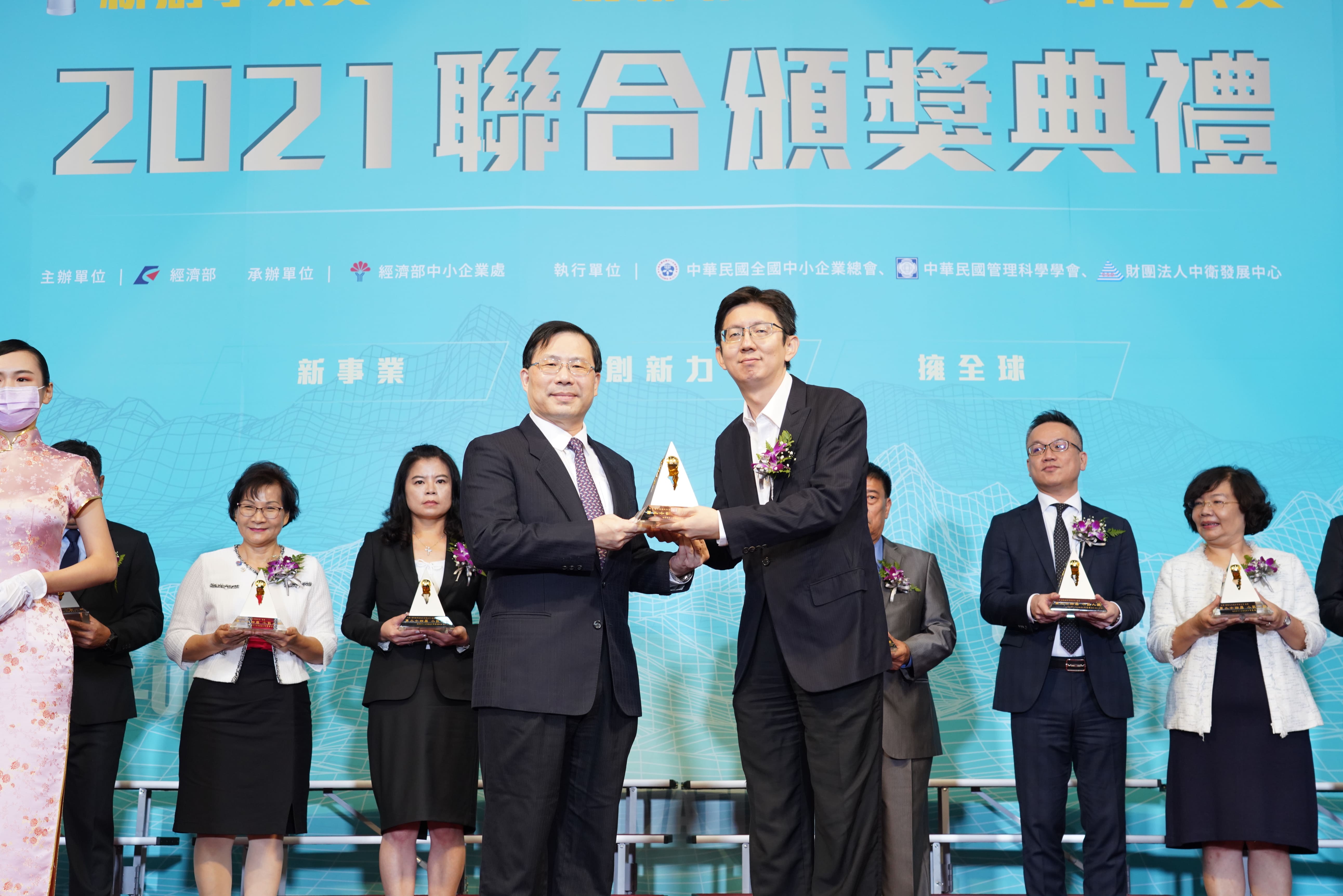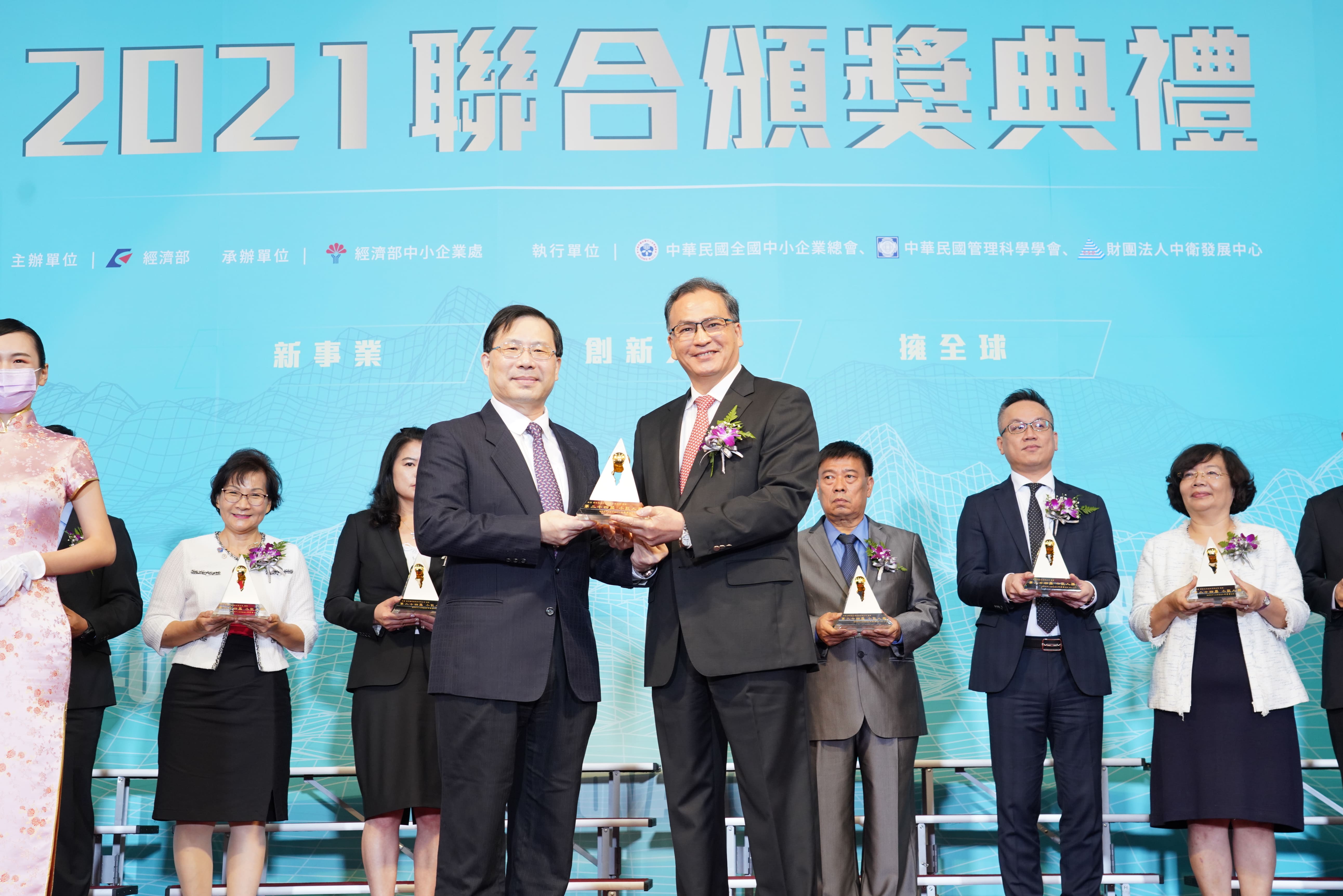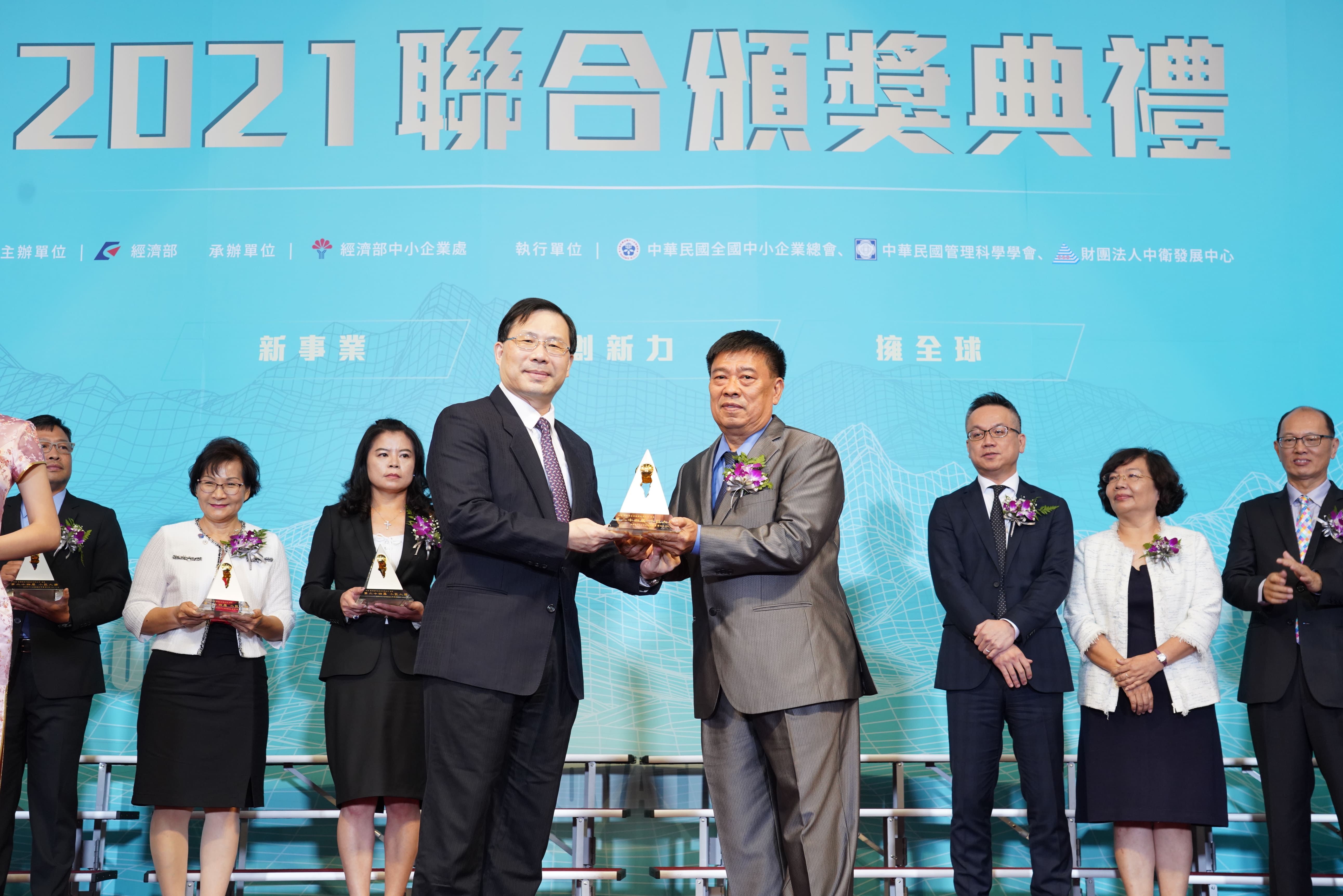 第24屆小巨人獎得獎企業與經濟部林次長全能、中企處處長何處長晉滄合影.JPG