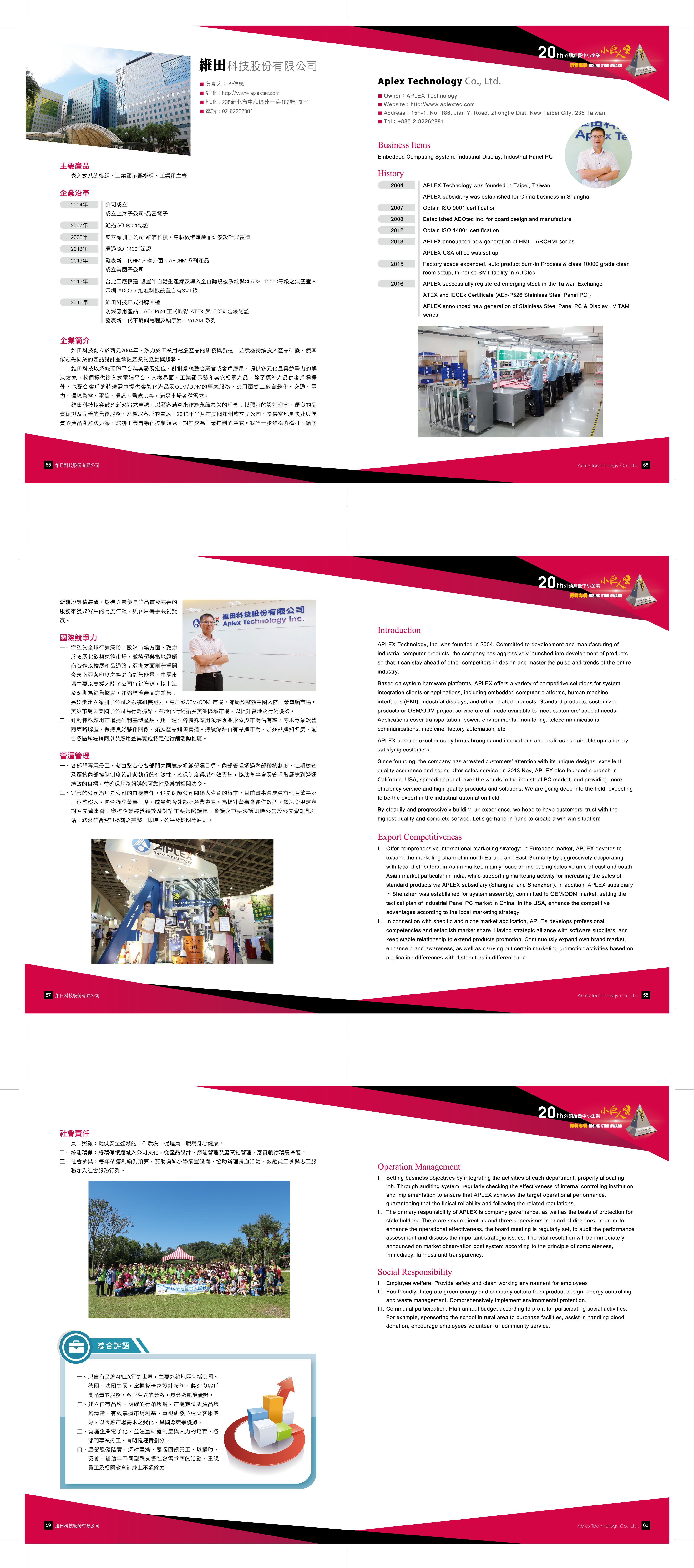 | 維田科技股份有限公司 | 02-82262881 | 新北市中和區建一路186號15F-1 | http://www.aplextec.com |