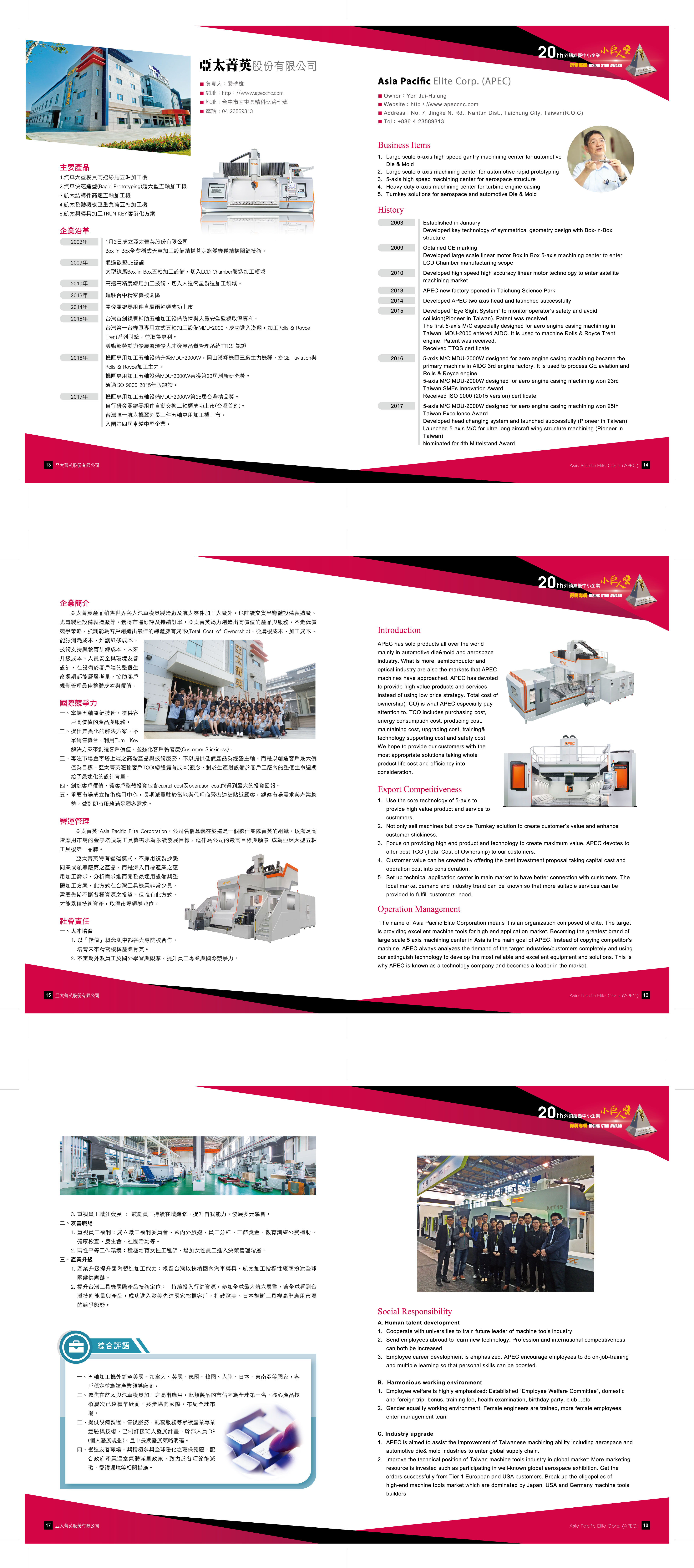 | 亞太菁英股份有限公司 | 04-23589313 | 臺中市南屯區精科北路7號 | http://www.apeccnc.com |