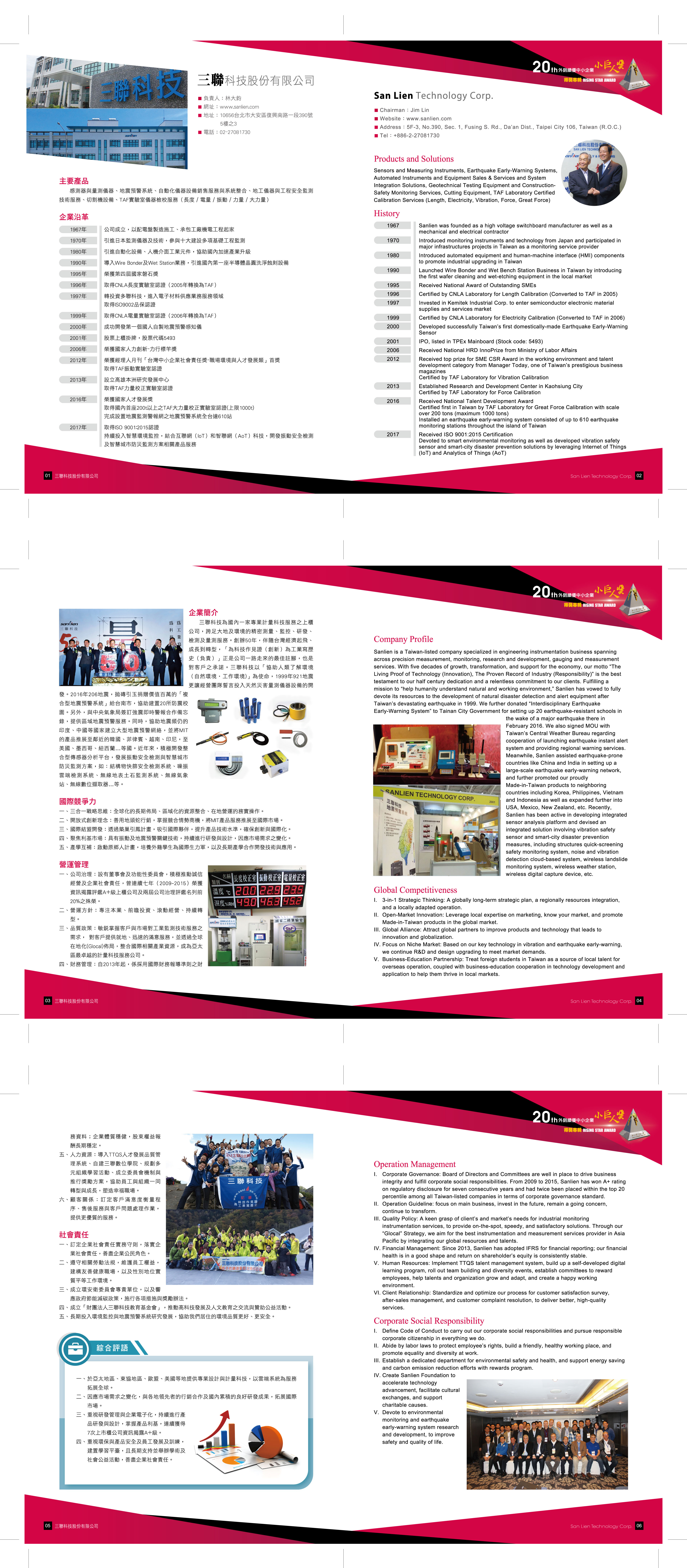 | 三聯科技股份有限公司 | 02-27081730 | 臺北市大安區復興南路一段390號5樓之3 | http://www.sanlien.com |