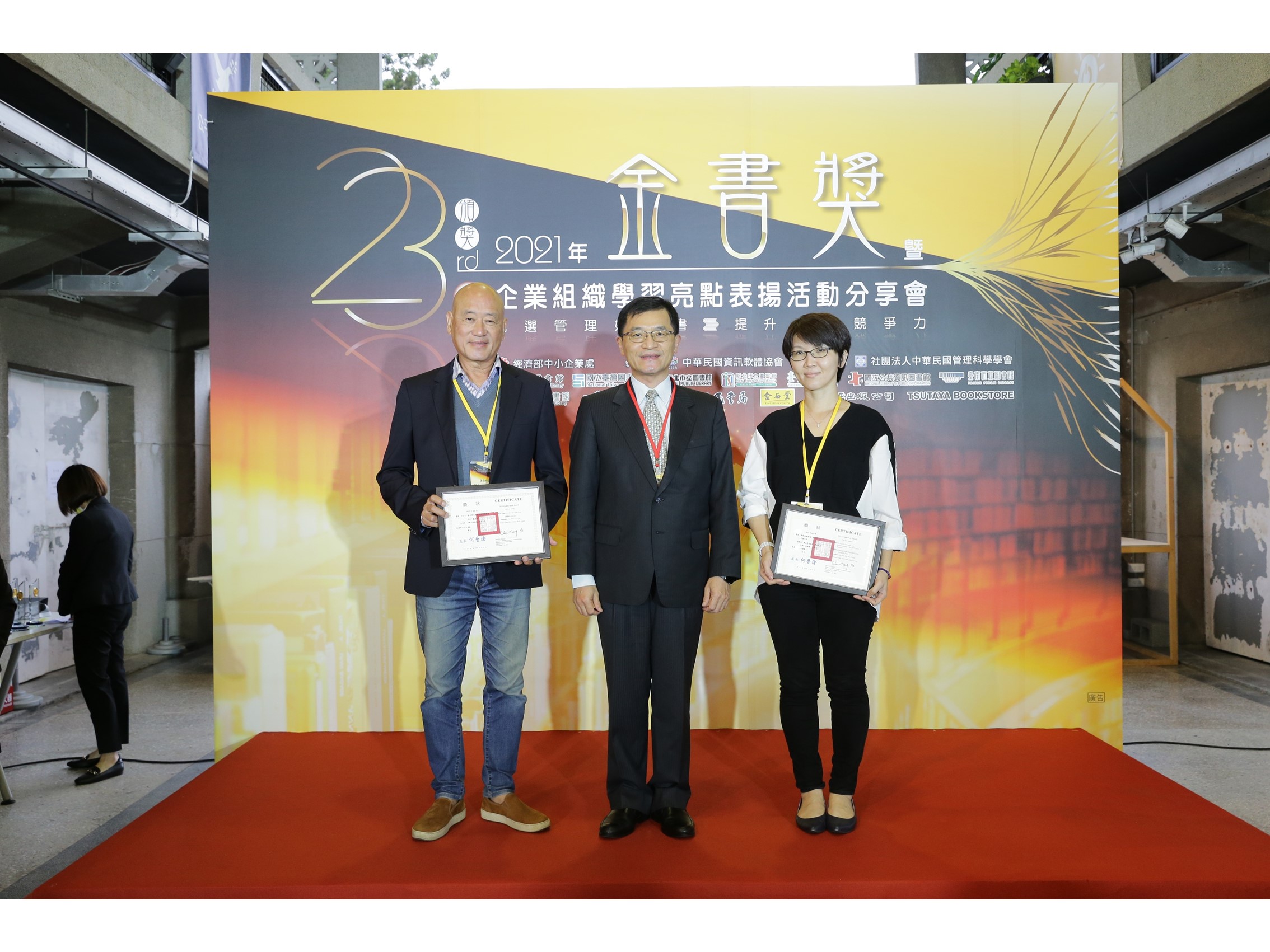 為傳遞「甄選管理好叢書、提升企業競爭優勢」之精神,經濟部中小企業處「2021年金書獎暨企業組織學習亮點表揚活動分享會」於11月23日假社會創新實驗中心一樓中庭辦理,由何晉滄處長出席頒發金書獎、學行標竿獎、學達應用獎及學思創新獎,以推廣適合中小企業閱讀的優良書籍,並鼓勵企業組織學習亮點企業之經驗。