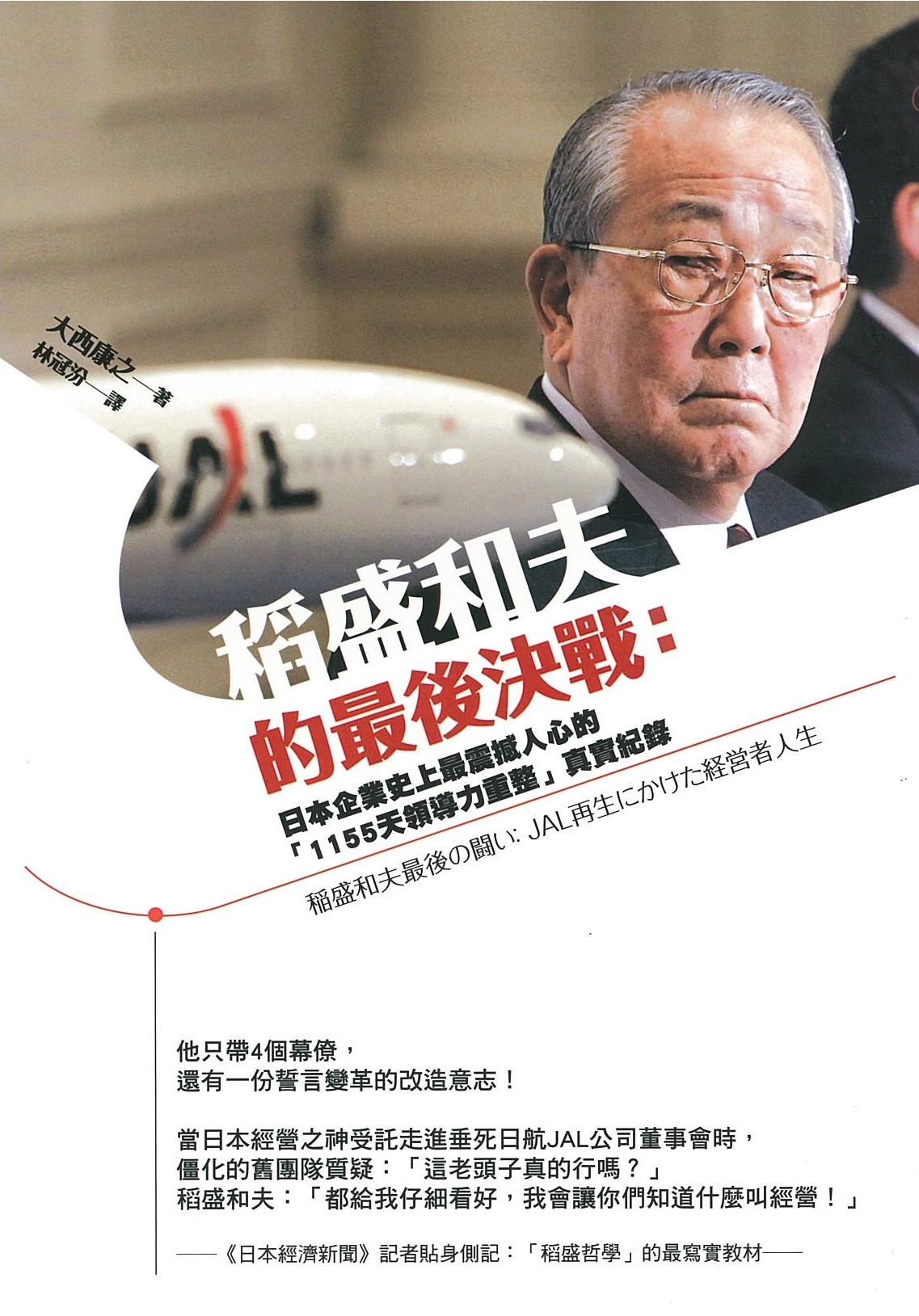稻盛和夫被譽稱「日本經營之聖」,與松下幸之助(被譽為「日本經營之神」,都是自力創業成功中小企業家出身的日本大型企業經營典範。稻盛和夫在高齡之際被日本政府賦予解救日本航空(JAL)二次破產之危機,只帶三個人(連自己四個人)進駐三萬多人的政府官僚無效體系的日航(JAL),用「稻盛哲學」及「變形蟲利潤中心」技術兩項方法,在1155天(三年)內,改變官僚無效的國有企業,成為競爭有效的「國有民營」企業,使日航起死回生,可以作為中小企業有效經營的明鏡,從無形到有形,從微小到巨大,值得推薦。