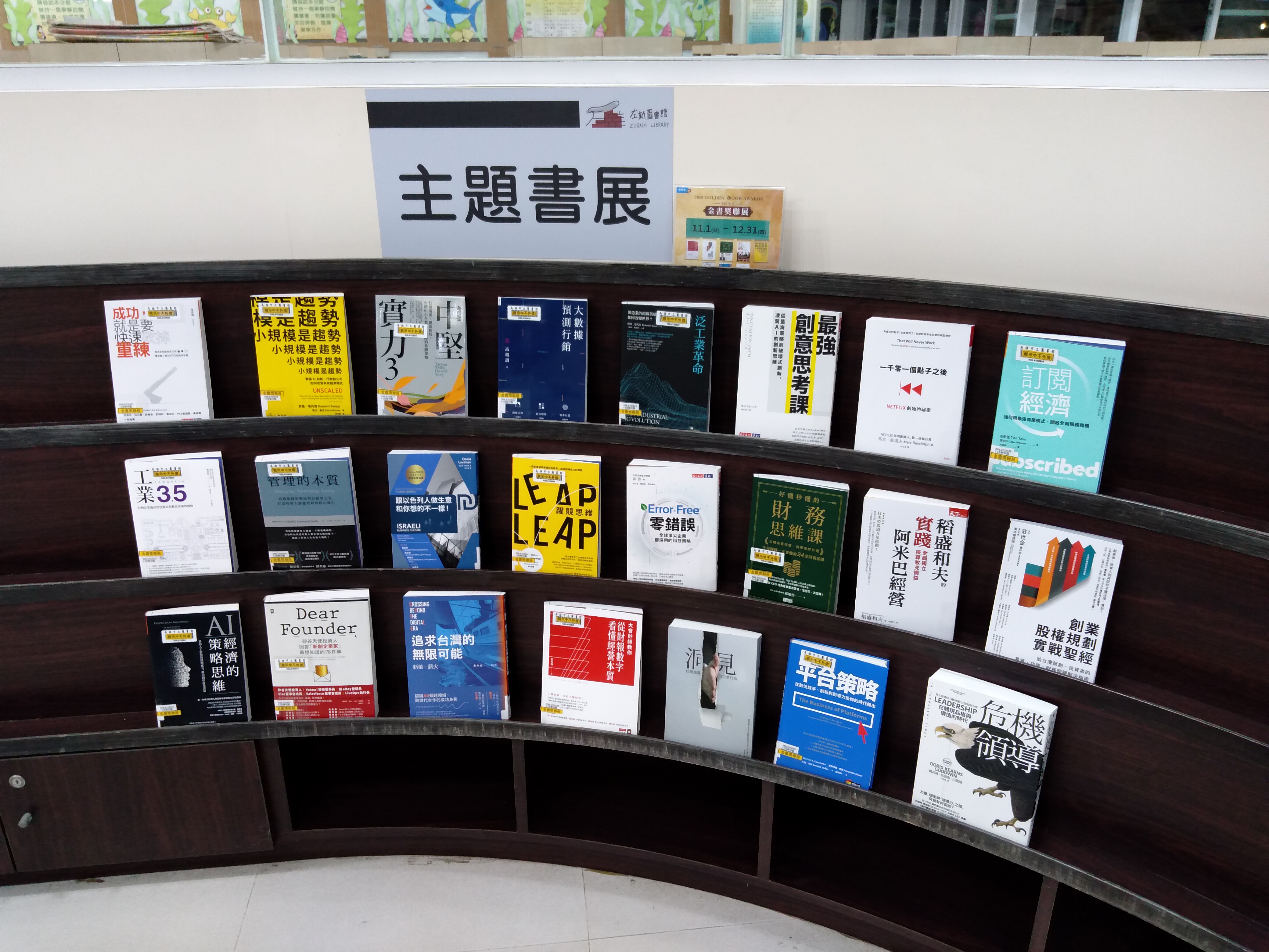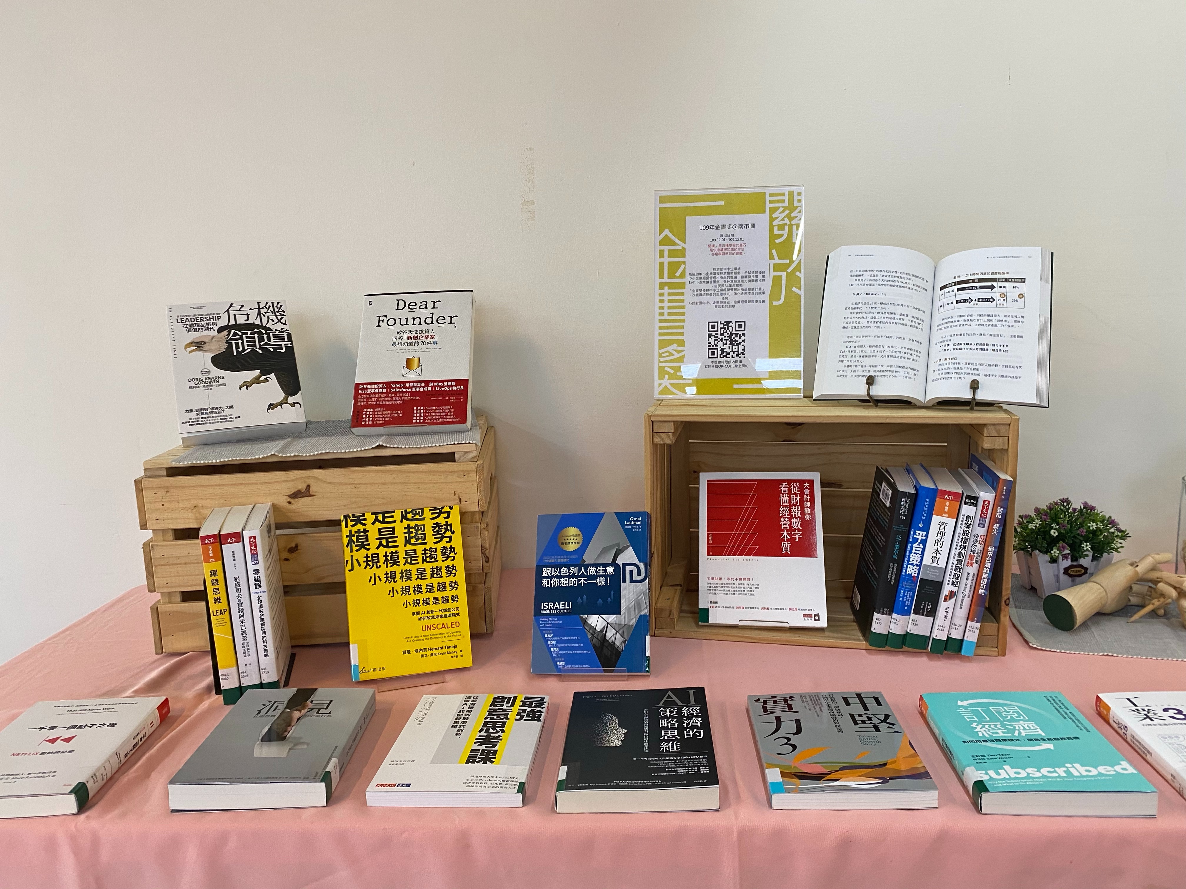 為有效擴散好書閱讀,將於今(109)年11月及12月與全臺7處圖書館辦理聯合書展。聯展單位包括:國家圖書館、國立臺灣圖書館、台北市立圖書館、新北市立圖書館(總館)、台中市立圖書館(李科永紀念圖書分館)、國立公共資訊圖書館、台南市立圖書館、高雄市立圖書館(左新分館)。亦將透過網絡平台等多元管道,傳遞推薦獲獎作品,希望能協助提升中小企業經營能力與創新思維,強化企業永續競爭力。