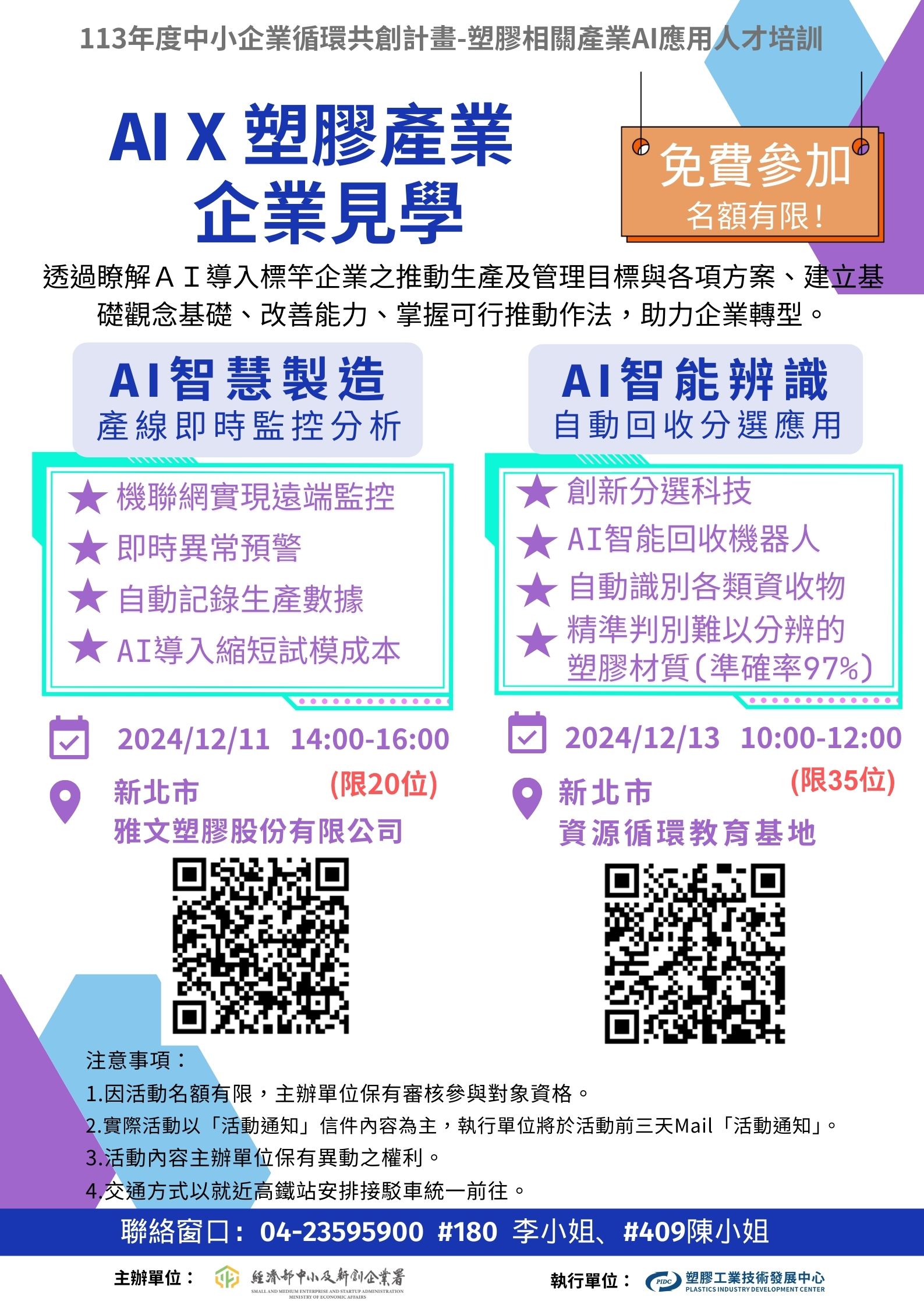 ♦ 活動時間:113/12/11(三) 14:00-16:00 新北市_雅文塑膠股份有限公司
