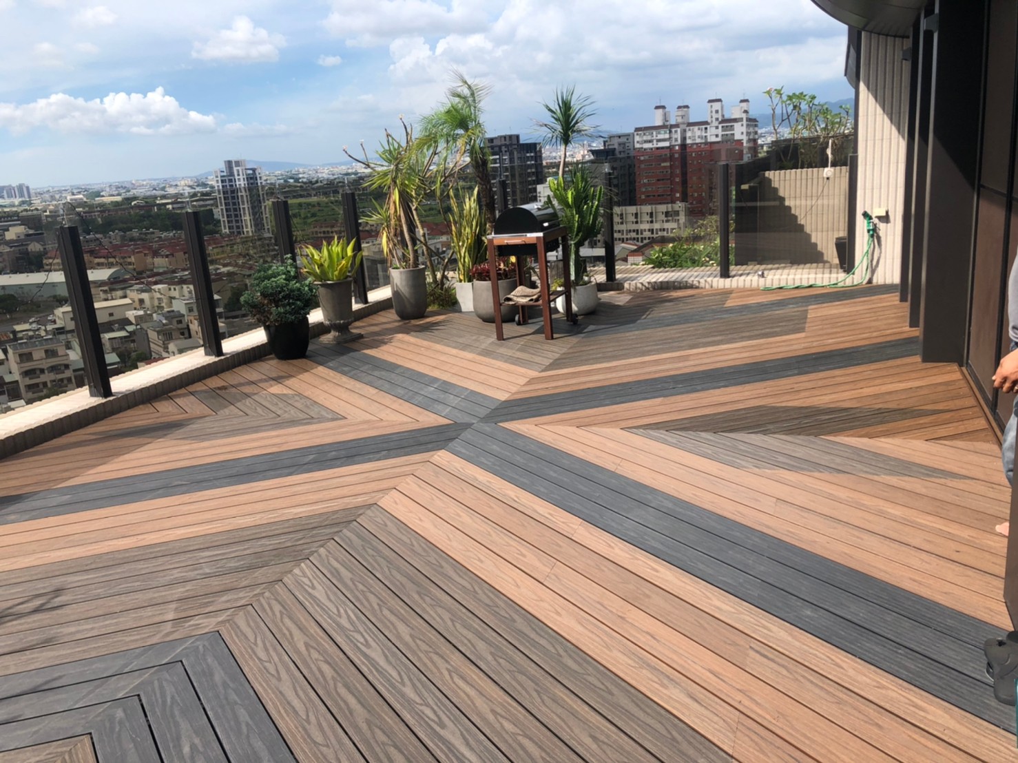 Less maintenance and non-toxic green building materials invented with mixture of recycled PE and wood fiber passed FSC certification, in replacement of traditional woodwork, and friendly to the forest.