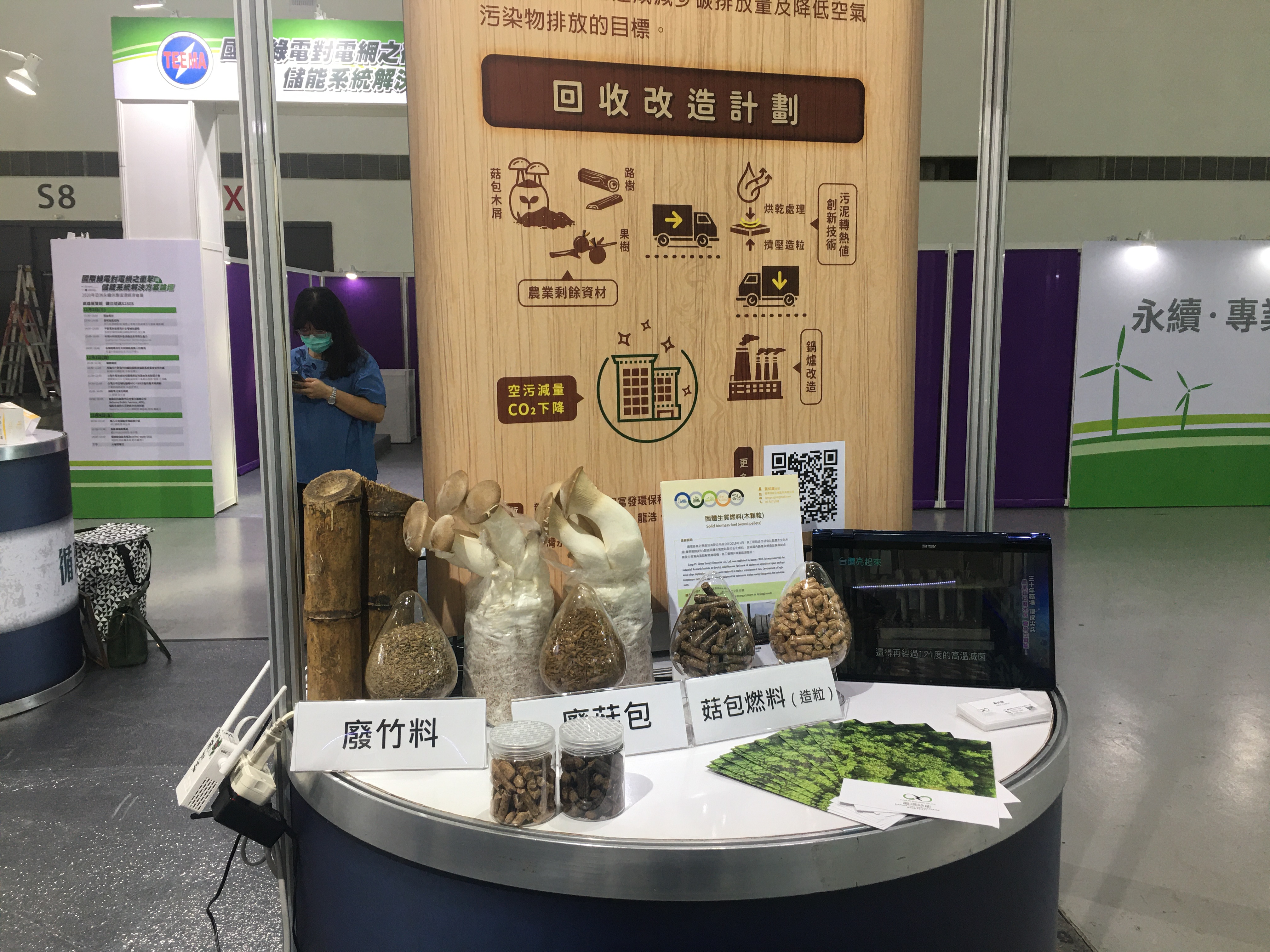 為解決菇農太空包丟置處理問題,將菇類太空包培養基(木屑)開發成為「木顆粒」,成為生質燃料可應用於蒸氣鍋爐輔助燃料之一,除可有效提供現今社會所需能源,並提高資源可再利用之永續性。