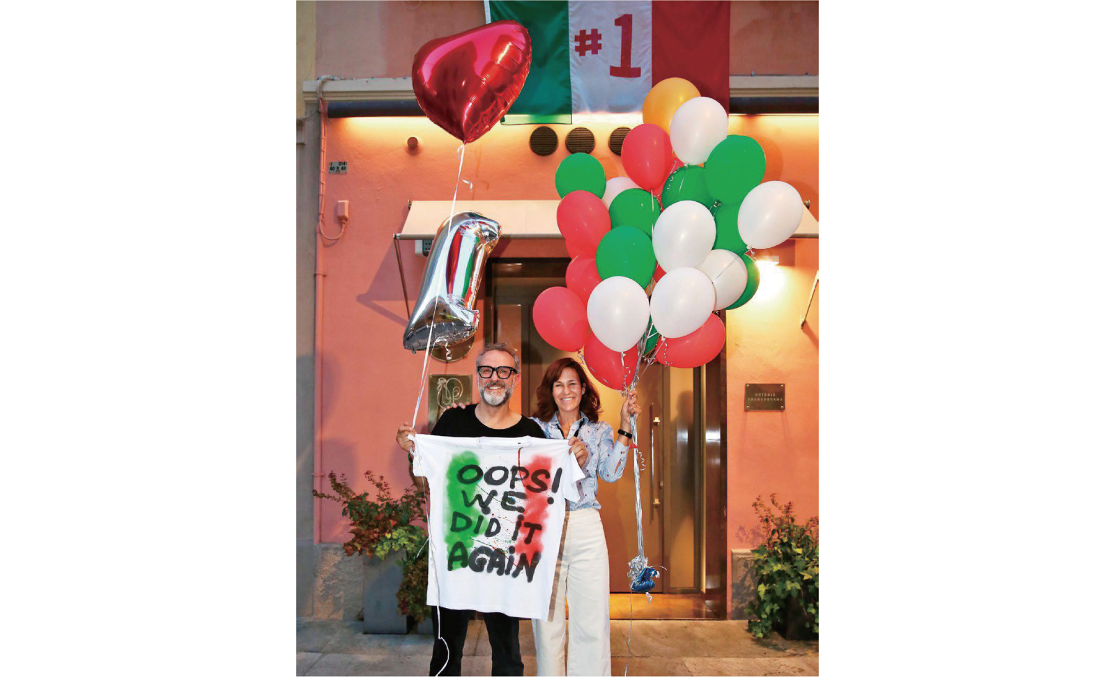 當時失望的馬西默多次在內心興起關閉餐廳的打算,還好有他的妻子娜蘿 (Lara) 這樣的伯樂在背後給予不斷的鼓勵與支持,如果沒有得到生命中最重要知己永不放棄的賞識, 後來的米其林三星 Osteria Francescana 早就淹沒在歷史的洪流當中,何來 2016 及 2018 年全球最佳餐廳的桂冠?娜蘿語重心長的提醒馬西默:「這不是關閉一家餐廳那麼簡單,而是打破了你要把義大利廚房帶入新境界的夢想。」妻子的話讓馬西默茅塞頓開,從此堅定信心走向自由創新的路線。