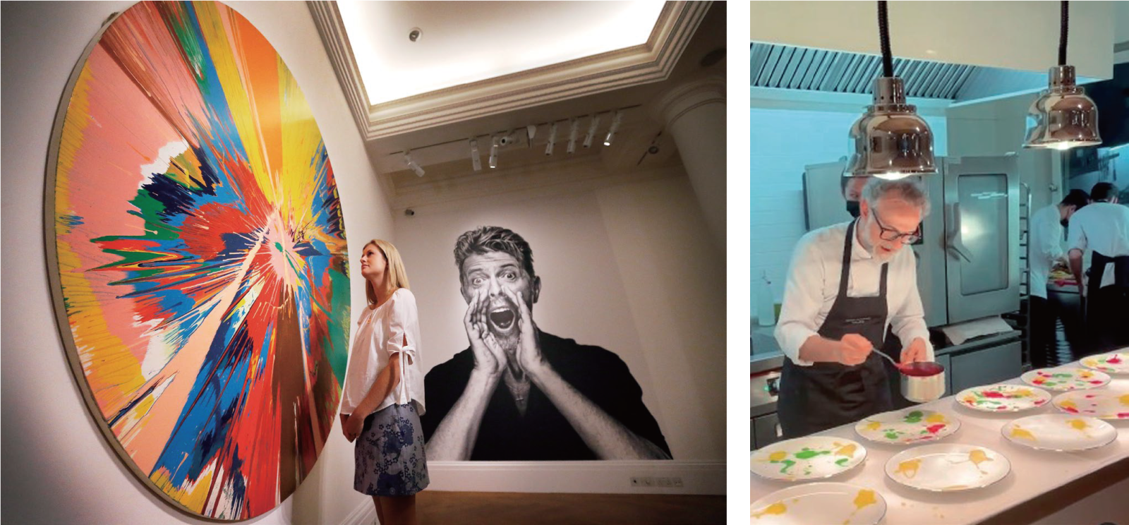 ▲ 受到藝術家 Damien Hirst 在轉盤上潑灑顏料的啟發,馬西默的代表作則是隨興潑灑不同顏色的醬汁進行創作,形塑出強烈的個人料理風格。