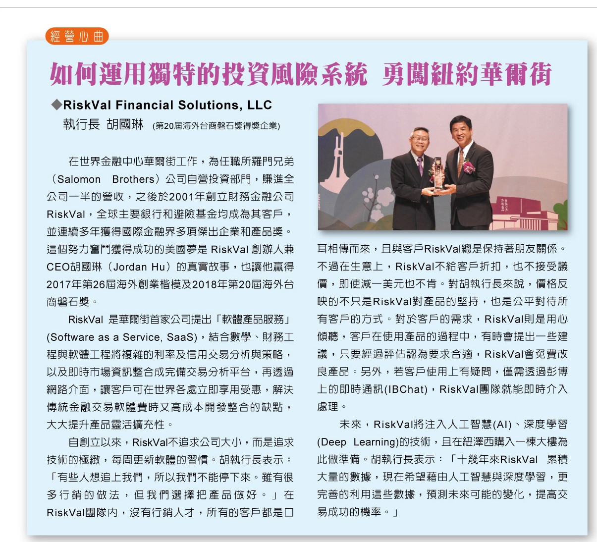 RiskVal Financial Solutions,LLC-如何運用獨特的投資風險系統 勇闖紐約華爾街
