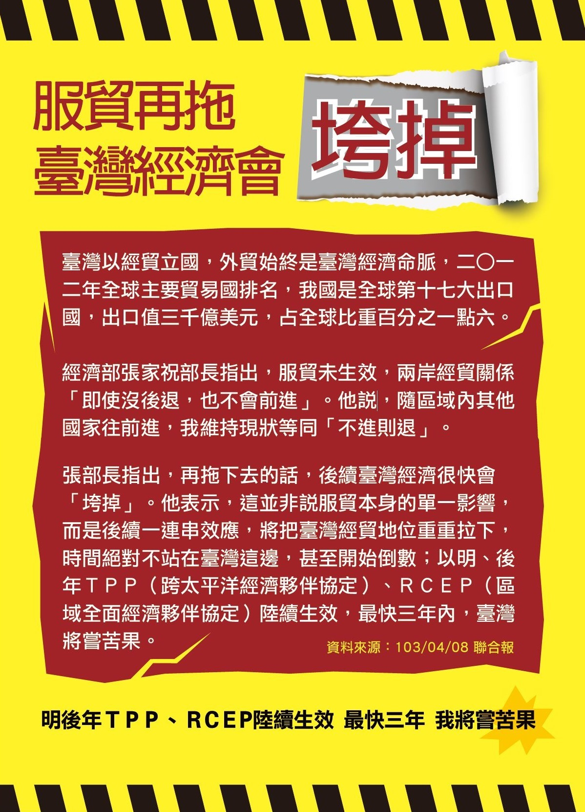 [文宣快遞] 服貿再拖臺灣經濟會垮掉