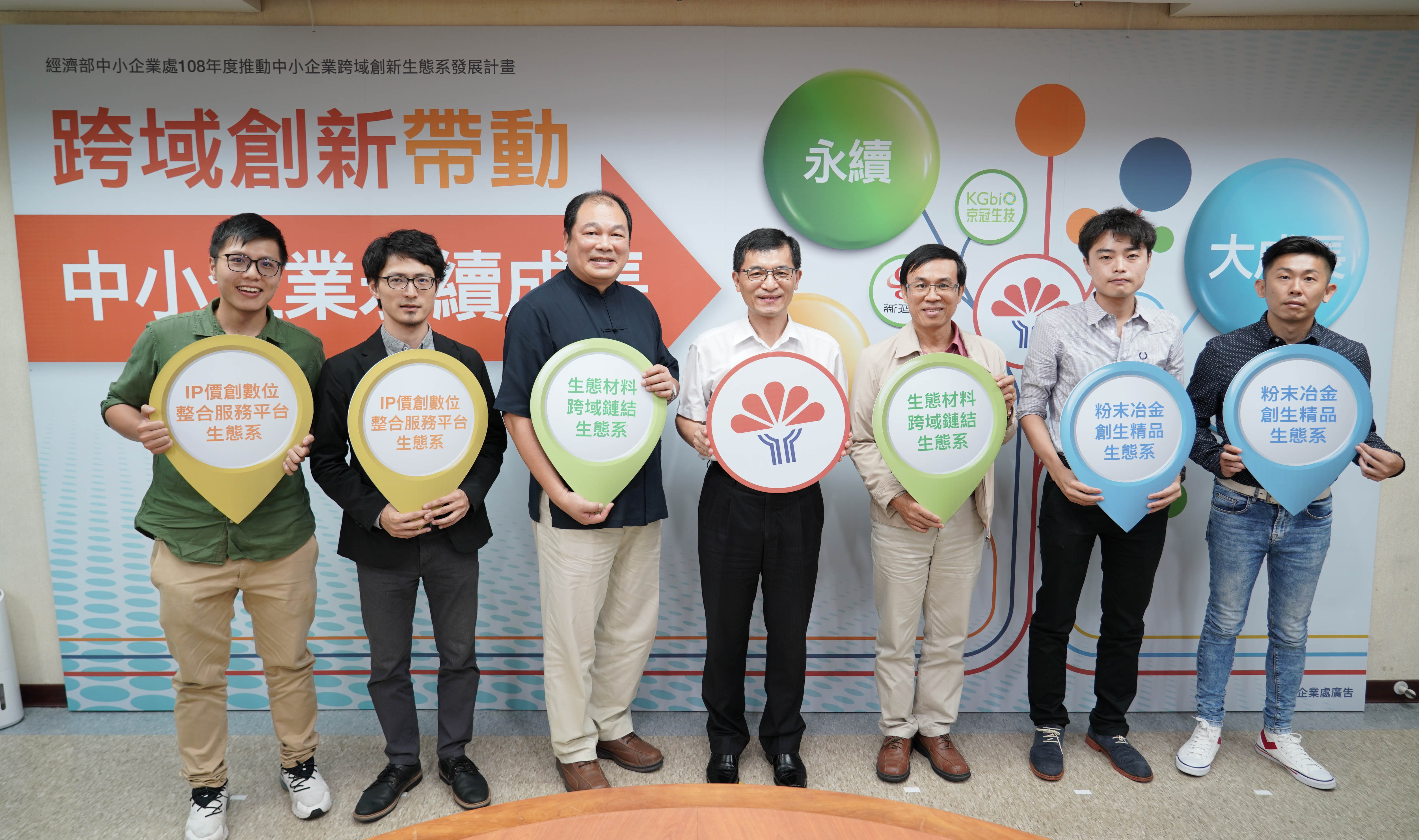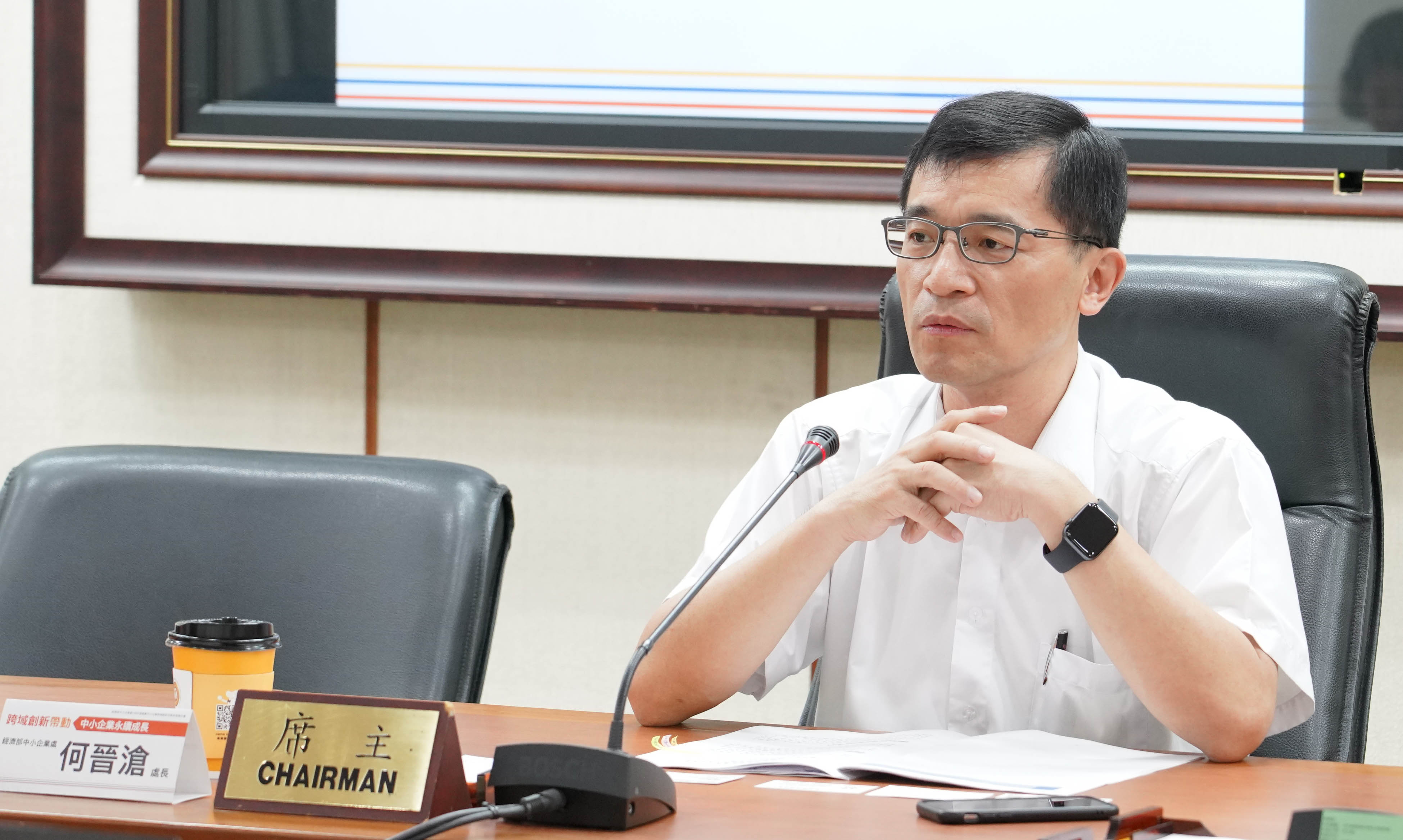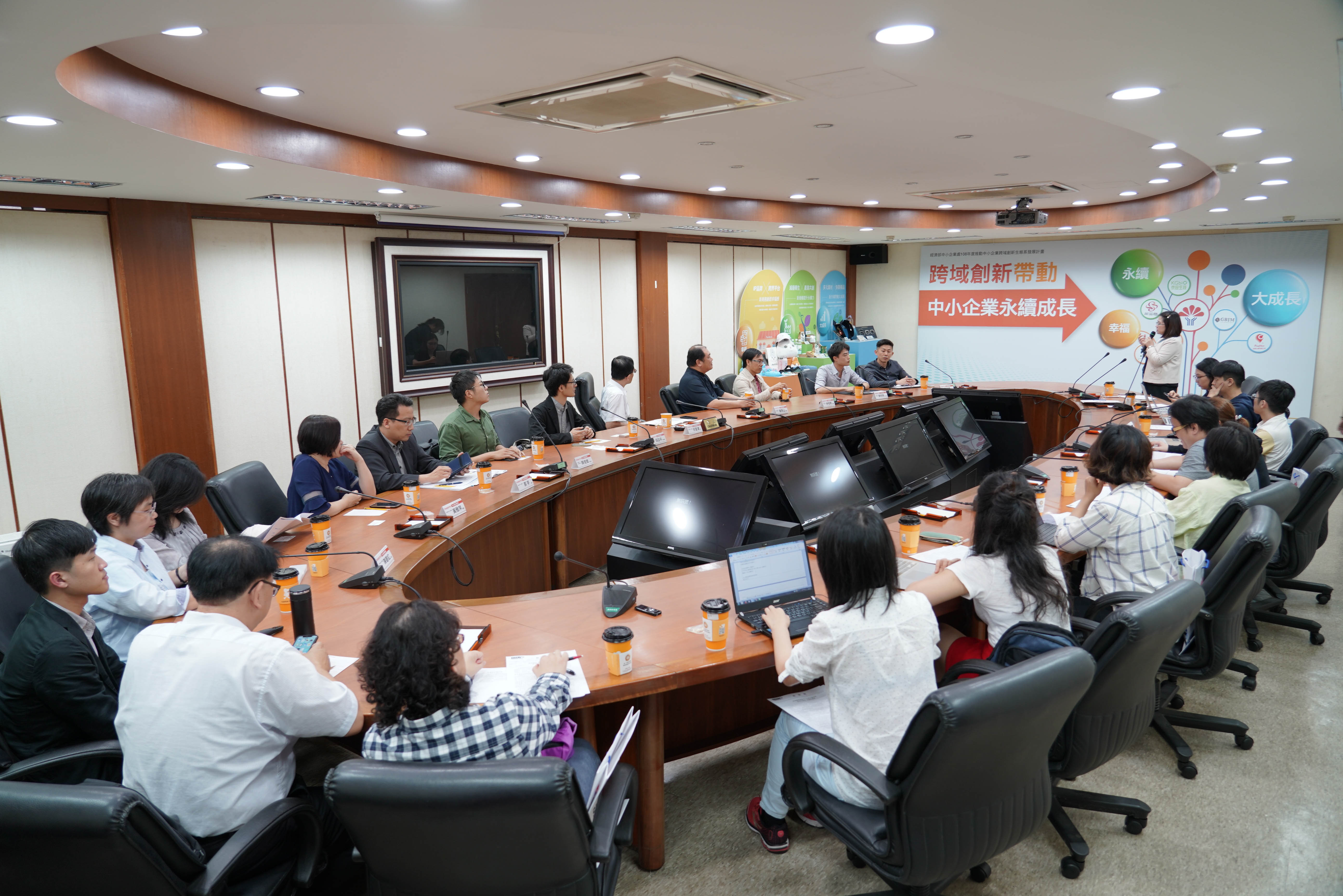 中小企業處大家長何晉滄處長在經濟部主持「跨域創新帶動中小企業永續成長記者會」,邀請6家業者現身展示數位、永續、國際化三大生態系精神,向各界分享中小企業處如何協助中小企業應用科技加值,帶動產業合作的成功案例──