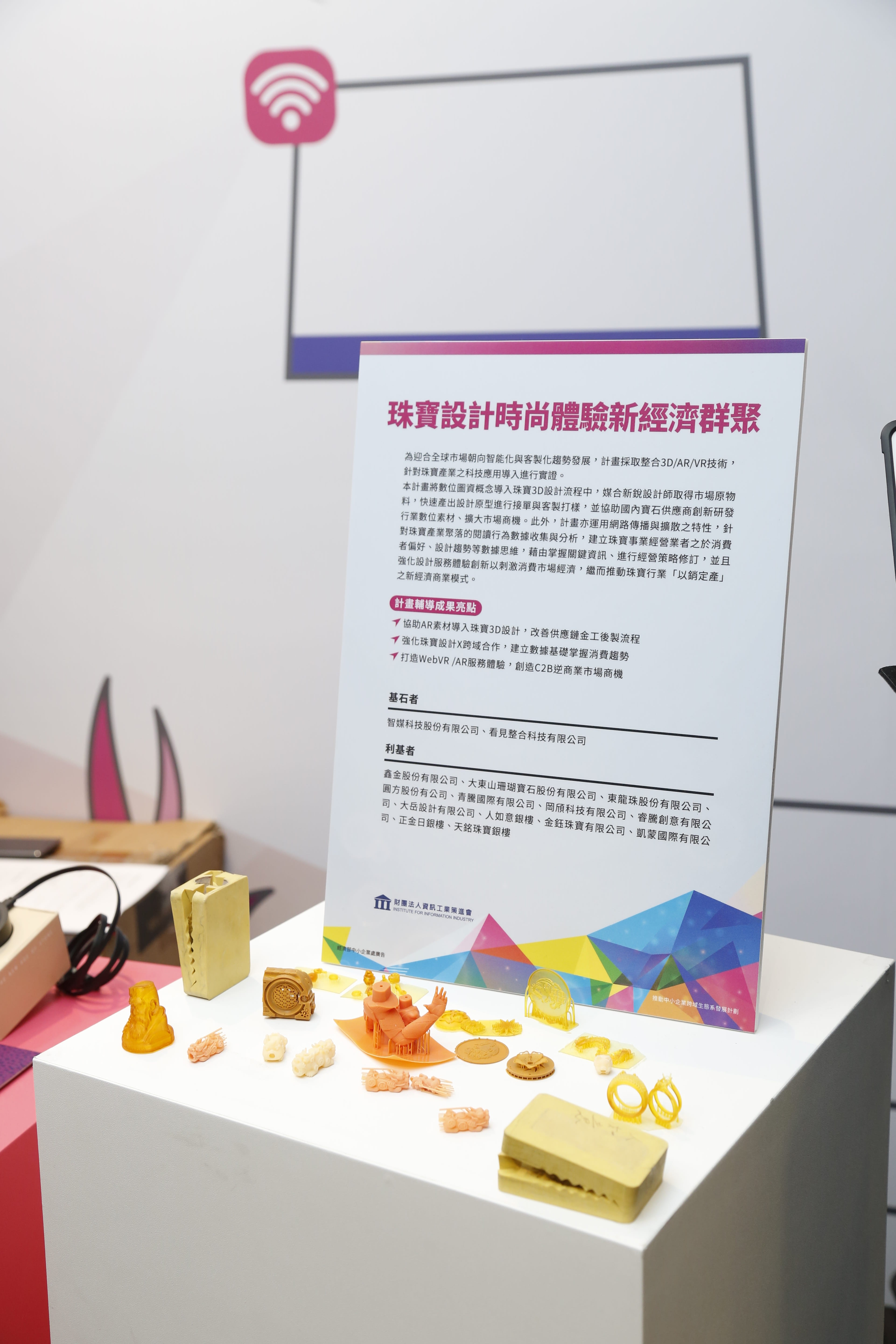 本計畫為迎合全球市場朝向智能化與客製化趨勢發展,採取整合3D/AR/VR技術,針對珠寶產業之科技應用導入進行實證,將數位圖資概念導入珠寶3D設計流程中,媒合新銳設計師取得市場原物料,快速產出設計原型進行接單與客製打樣,並協助國內寶石供應商創新研發行業數位素材、擴大市場商機。此外,計畫亦運用網路傳播與擴散之特性,針對珠寶產業聚落的閱讀行為數據收集與分析,建立珠寶事業經營業者之於消費者偏好、設計趨勢等數據思維,藉由掌握關鍵資訊、進行經營策略修訂,並且強化設計服務體驗創新以刺激消費市場經濟,繼而推動珠寶行業「以銷定產」之新經濟商業模式。