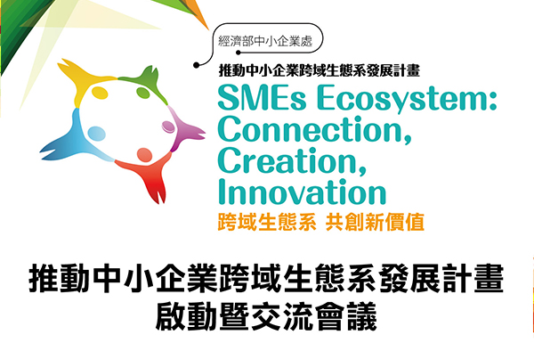 推動中小企業跨域創新生態系發展計畫,整合跨部會、跨法人、跨領域資源及體系成員專長。希望透過生態系成員與基石與利基業者的共創凝聚,以及法人協助輔導,運用科技加值、服務創新與營運模式改變,進行跨域整合,並發展創新營運模式。