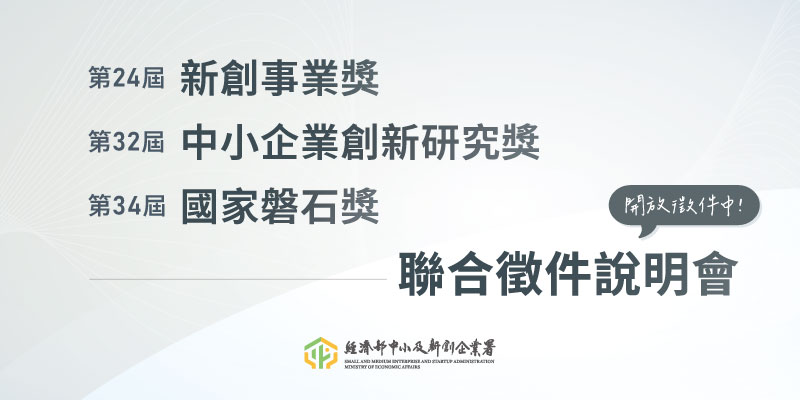 為鼓勵中小企業追求卓越、推動創新,今年4月份於北中南舉辦「國家磐石獎、創新研究獎、新創事業獎聯合徵件說明會」