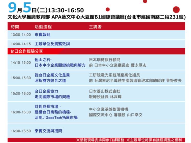 歡迎業界先進與會,擴大台日產業人脈及增強掌握跨國商機能耐。