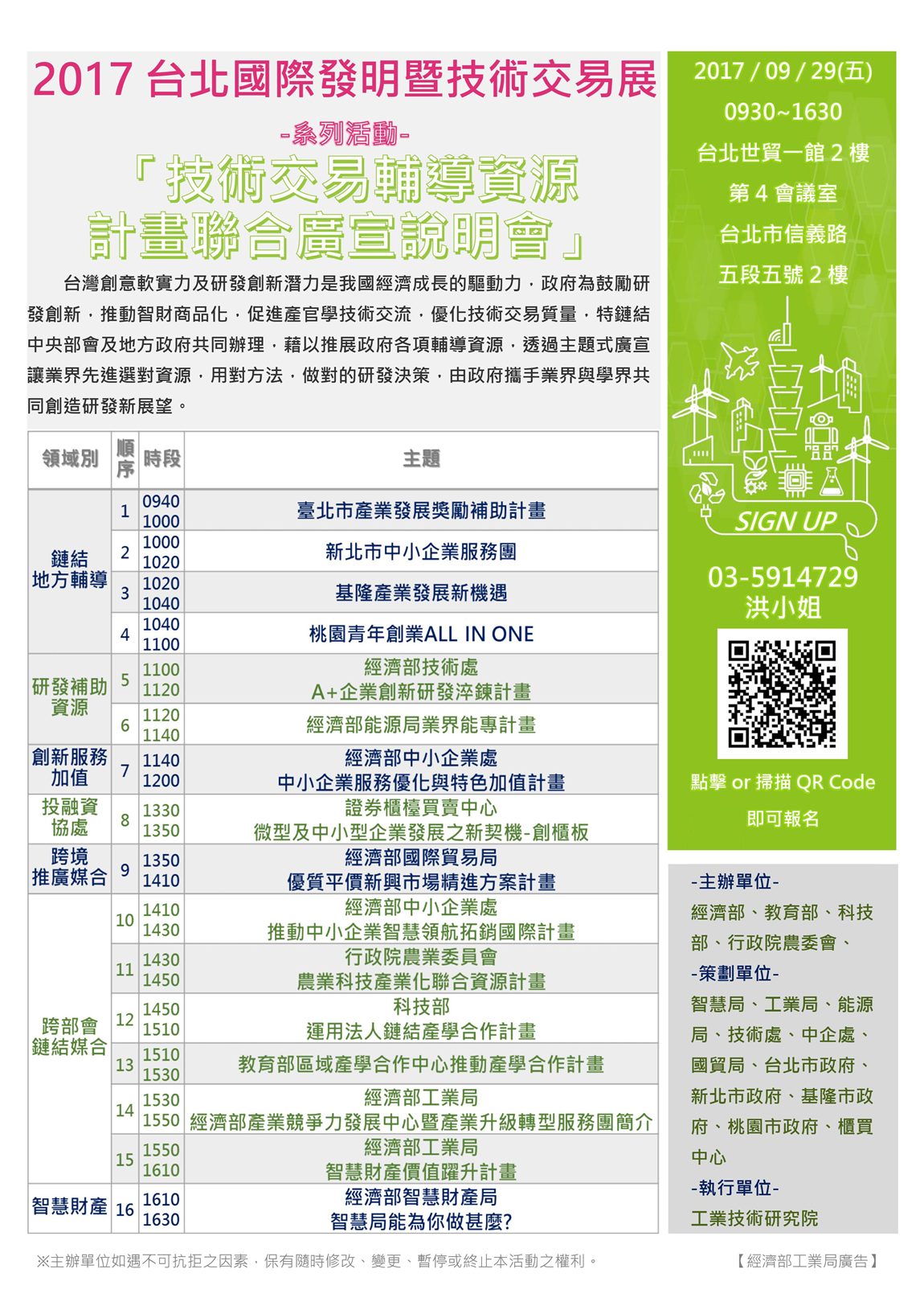 2017台北國際發明暨技術交易展-系列活動-「技術交易輔導資源計畫聯合廣宣說明會」