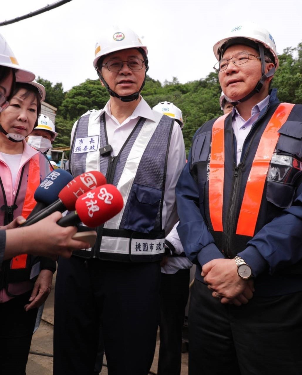 因配合三坑抽水站五合一工程施工,桃園市及新竹縣部分區域今(15)日零時起停水39小時,一早台水董事長胡南澤與桃園市長張善政共同視察台水二區處平鎮給水廠三坑原水站施工情況。董事長胡南澤表示目前工程進度順利,台水已整備13部水車、70處臨時供水站,希望將停水造成的不便降至最低,並感謝桃園市政府與新竹縣政府對本次工程的支持。