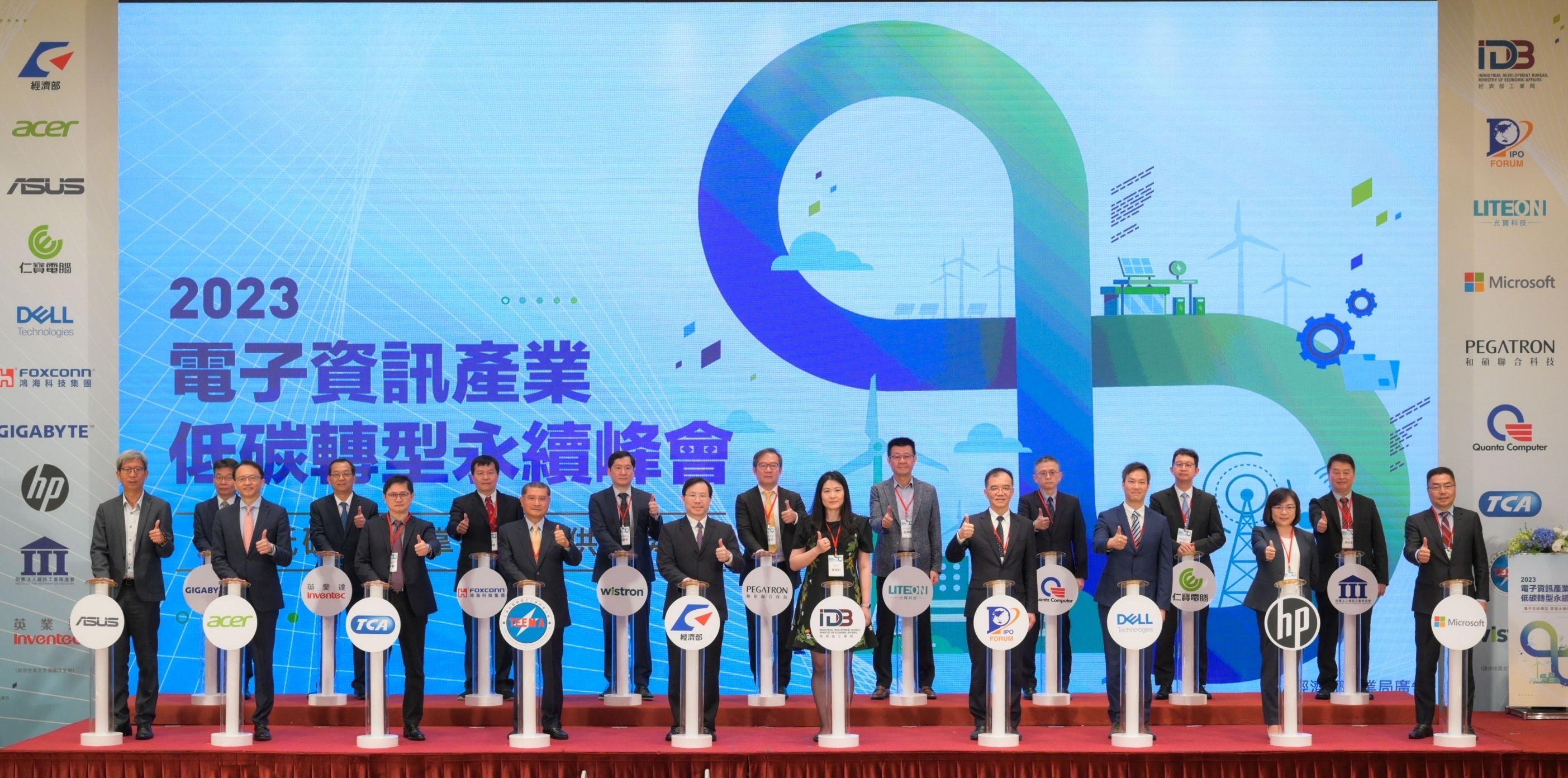 為達成我國2050淨零轉型目標,經濟部於112年5月16日辦理「2023電子資訊產業低碳轉型永續峰會」,號召近20家國內外供應鏈夥伴,例如宏碁(Acer)、華碩(Asus)、戴爾(Dell)、技嘉(Gigabyte)、惠普(HP)、微軟(Microsoft)