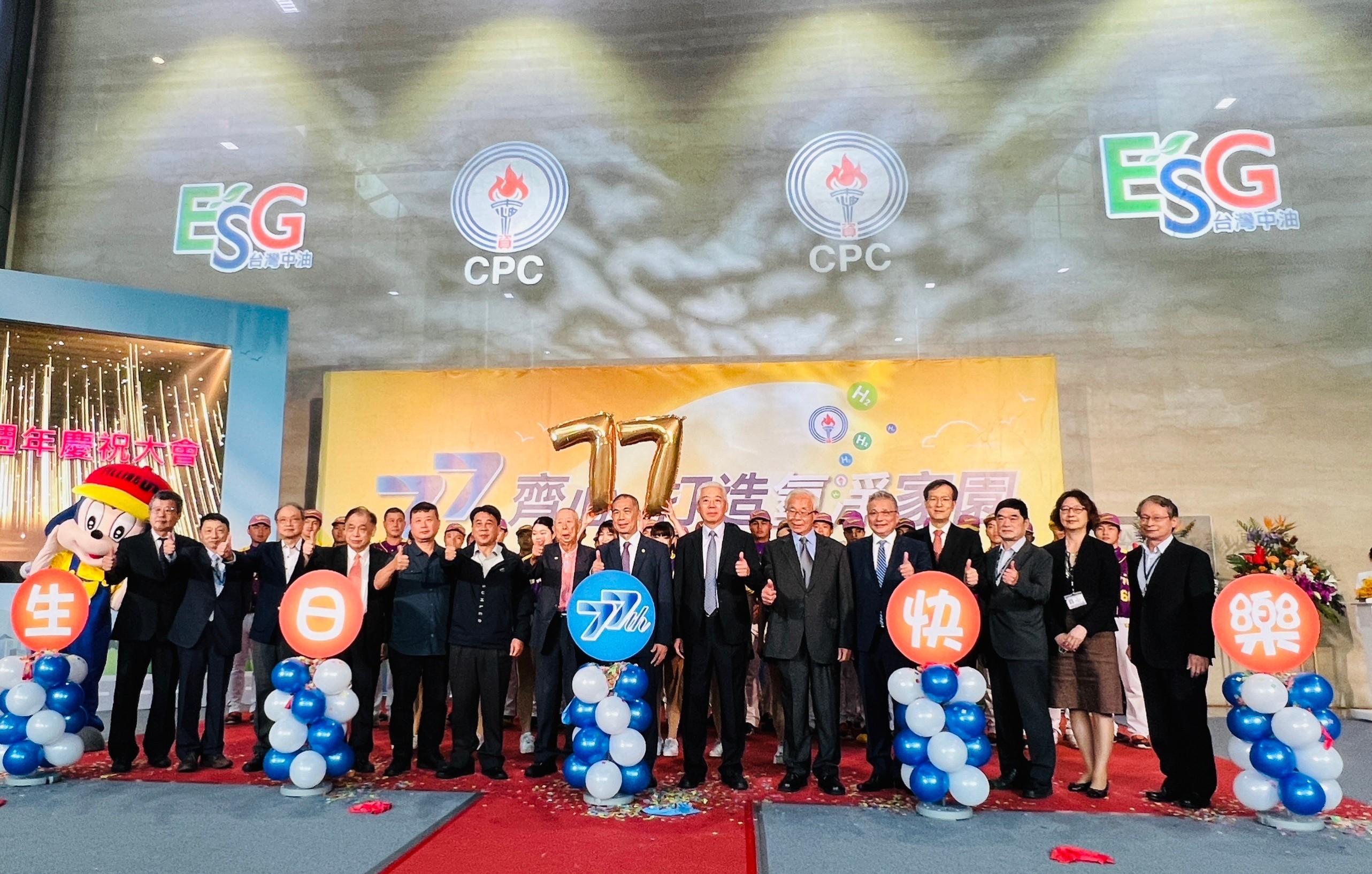 台灣中油公司今(1)日於臺北中油大樓1樓大廳舉辦「77齊心 打造氫淨家園」77週年慶祝大會,由董事長李順欽主持,宣示在既有ESG的基礎上進一步連結淨零轉型策略,朝永續之路邁進!「齊心永續台灣,啟動氫淨中油」,讓台灣中油成為受人尊敬、值得信賴、永續發展的企業;活動相當熱鬧,台灣中油獎助的開南大學棒球隊以毛利人戰舞出場,吸引眾人目光,開南大學競技啦啦隊及國立苗栗特殊教育學校啦啦隊接續熱情表演,活力四射、動感十足,共同歡度77週年生日。