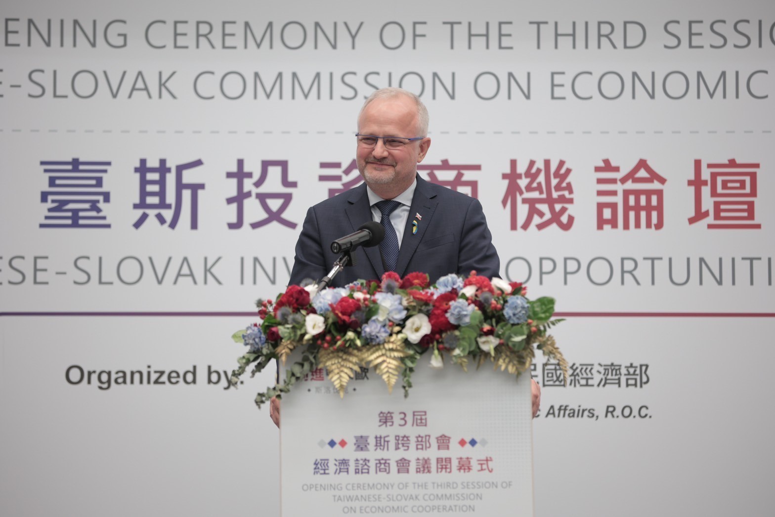 經濟部投資業務處張銘斌處長致詞歡迎訪團,表示斯洛伐克位處歐洲中心,地理位置絕佳,斯洛伐克為歐盟成員國,鄰近其他東歐和西歐市場,因擁有厚實之工業基礎、高等教育及外語人才充沛,營運成本較西歐低,且在資通訊、電子、製造、航太、汽車及醫療等產業具有優勢,已成為臺商前進歐盟投資布局之重要選項。臺灣許多知名企業如鴻海、台達電和友達等資通訊、電子及製造大廠均已在該地建立據點。