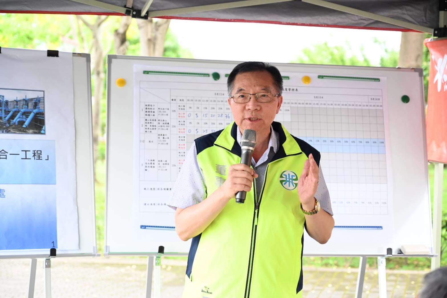 台水公司因桃園三合一工程,自今(12)日8時至14日3時,針對桃園市、新北市部分區域實施最長43小時計畫性停水,台水董事長胡南澤與桃園市副市長王明鉅下午前往工地共同視察施工情形。