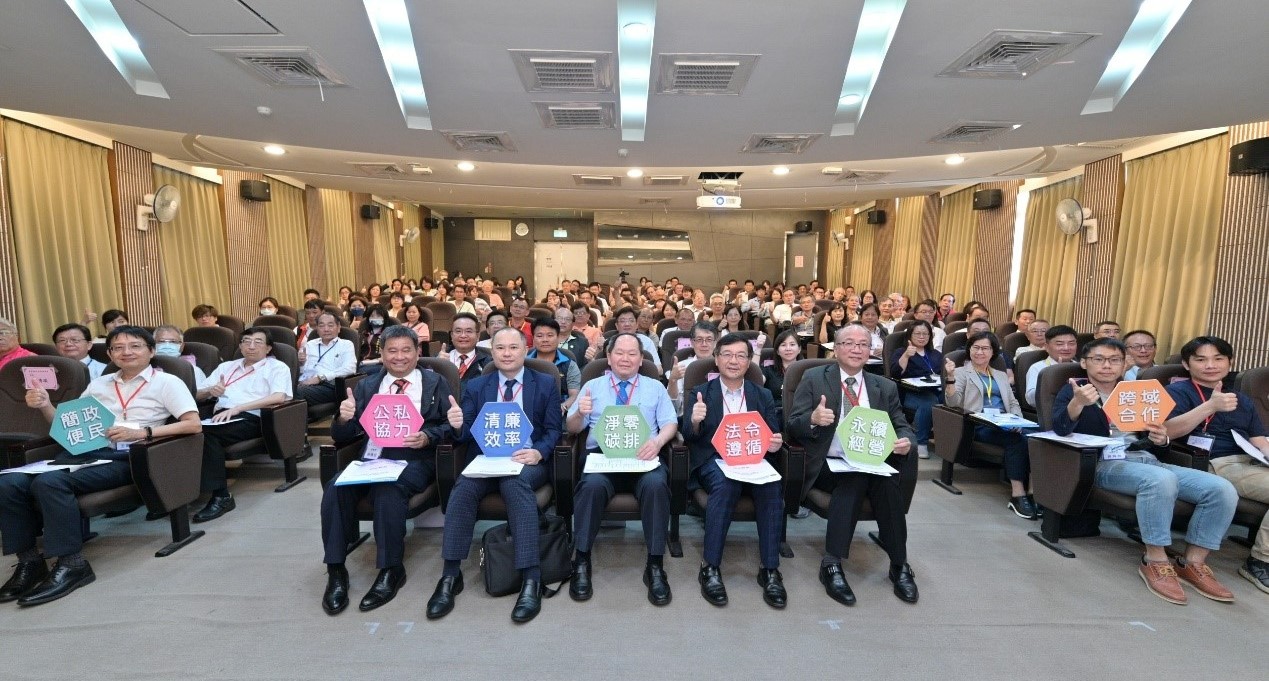 經濟部工業局於本(112)年6月20日在工業區環境保護中心舉辦「112年『圖利與便民區辨諮詢』廉政治理研討會 低碳轉型 法遵同行」中區場次,邀請中部地區工業園區廠商、公(協)會理事長及政府機關主管等產官界各領域代表100人一起參與,從「簡政便民」、「法令遵循」、「公私協力」、「永續經營」的角度,透過公私部門的研討交流,凝聚雙方合作目標共識。