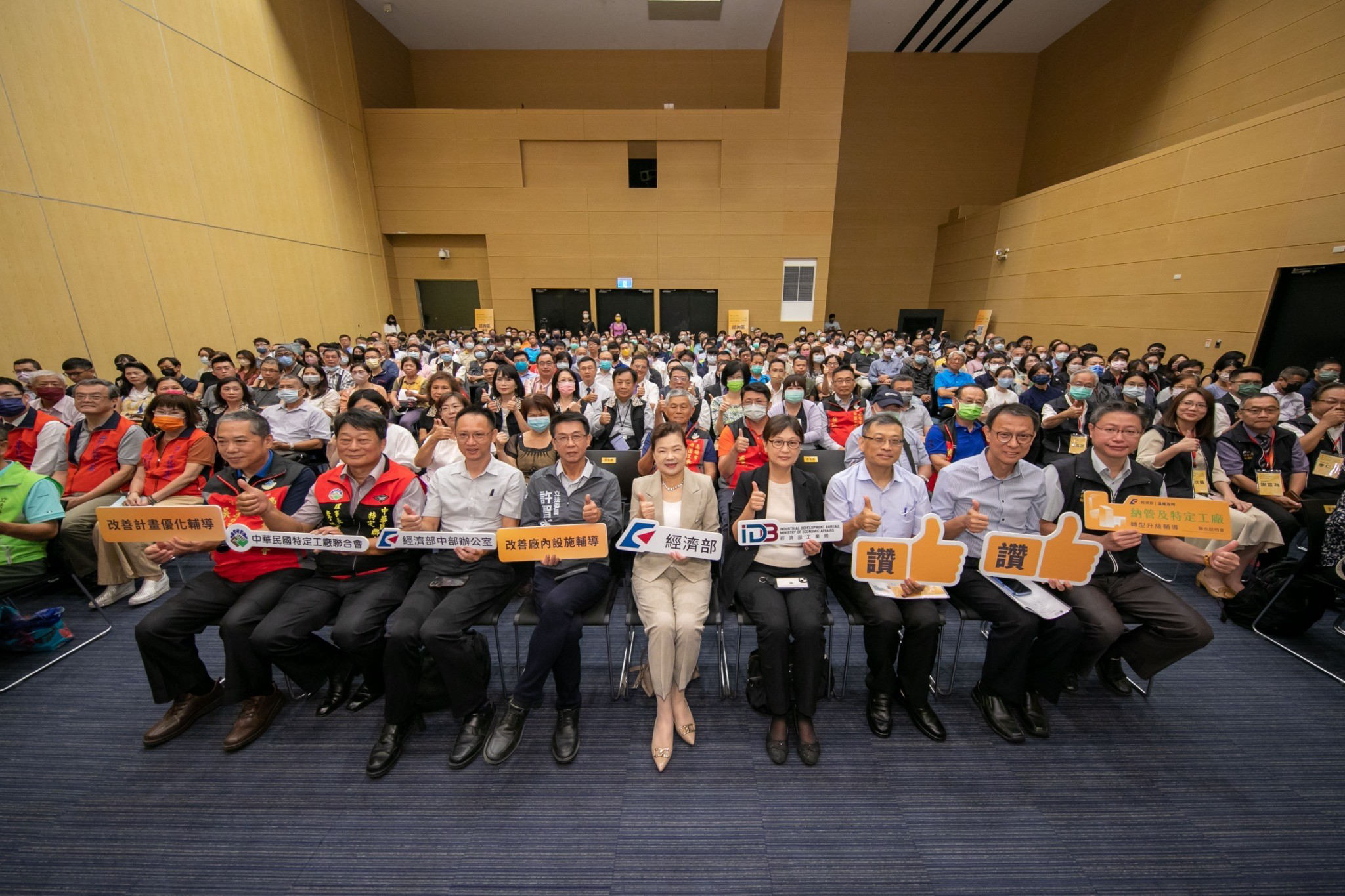 經濟部王美花部長也到場鼓勵納管與特登業者積極向特定工廠輔導團顧問諮詢及申請免費輔導資源,輔導團顧問也可進行到廠輔導,協助業者完善及落實改善計畫,以早日取得合法工廠資格。部長表示除了輔導業者完善及落實工廠改善計畫及輔導用地變更合法化等措施,也提供包括資金補助貸款補貼等措施,鼓勵業者透過智慧化及低碳化之方式,改善工廠環保及消防等設施,降低工廠碳排放量,提升工廠的營運效能,朝向永續發展。