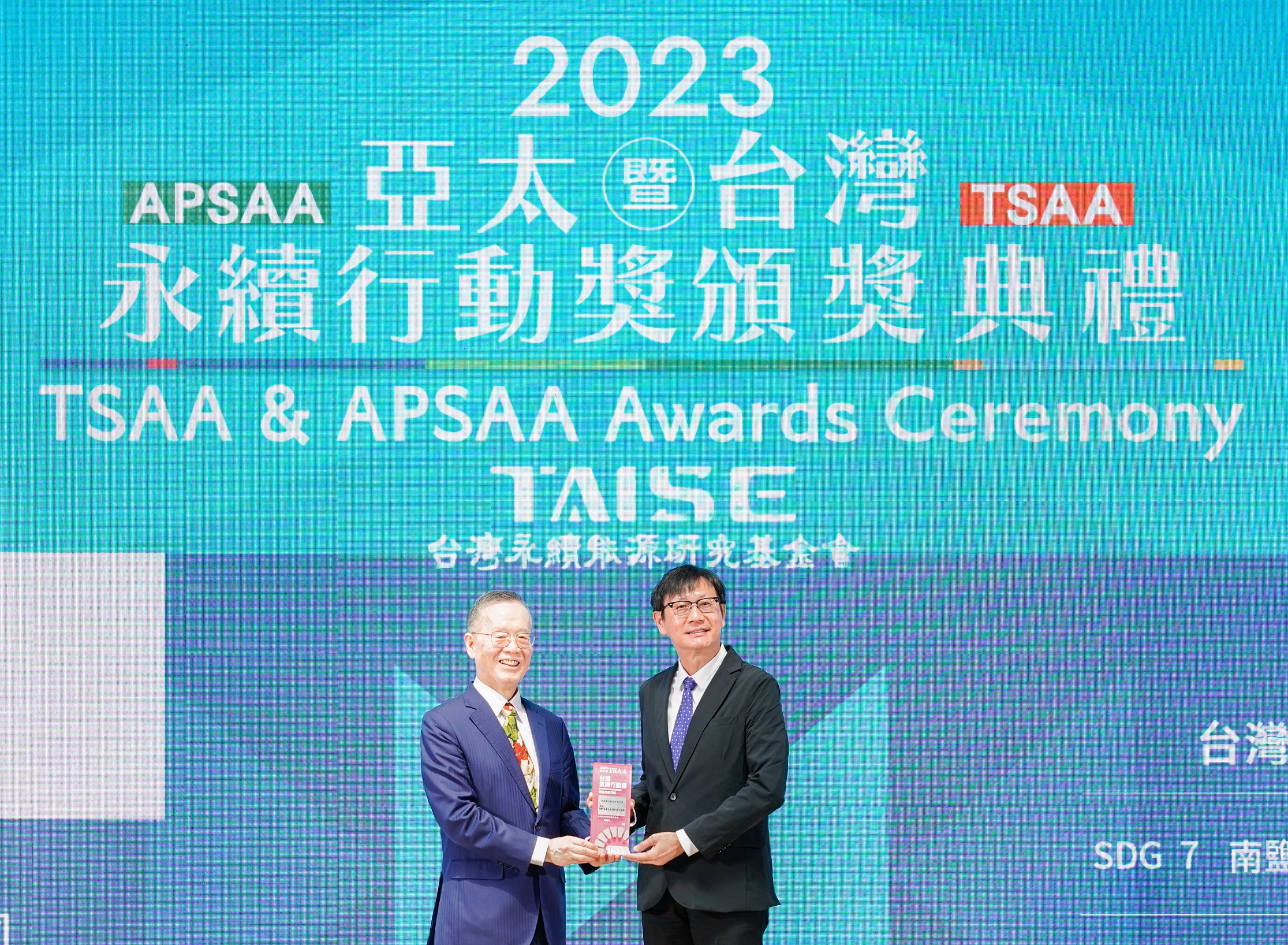 2023亞太永續行動博覽會暨台灣永續行動獎今日上午於世貿一館舉行頒獎典禮並同步開展,現場由台電副總經理徐造華代表領獎,與永豐銀行同享殊榮,奪下聯合國SDGs中第7項-可負擔能源(提供合理、可靠且永續的能源)類別金獎肯定,該獎開辦至今連三年獲獎。台灣永續行動獎自2021年起由台灣永續能源基金會舉辦,用以肯定於環境永續、社會共融及經濟發展三大面向實踐聯合國17項永續發展目標,並達到卓越成果及貢獻的企業單位和政府機構。