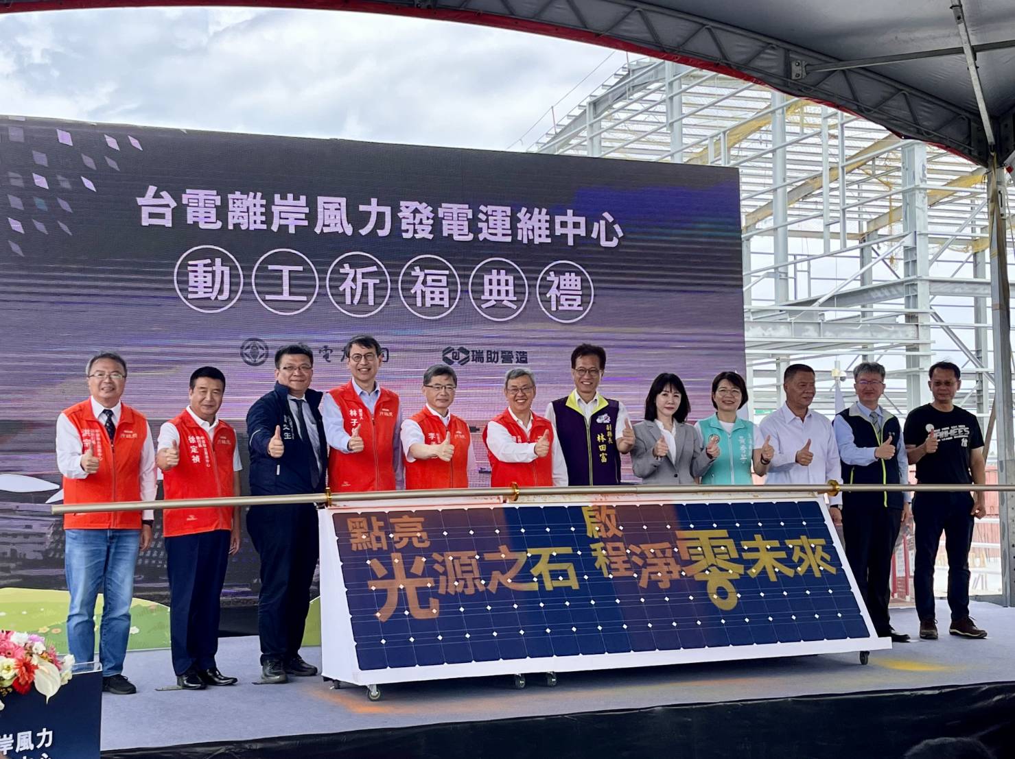 台電今(13)日於彰濱工業區舉行「台電離岸風力發電運維中心動工祈福典禮」,由行政院院長陳建仁、行政院發言人林子倫、立法委員謝衣鳯及黃秀芳、經濟部次長兼台電代理董事長曾文生、彰化縣副縣長林田富、台電總經理王耀庭等各界貴賓,共同見證台電綠能發展里程碑。