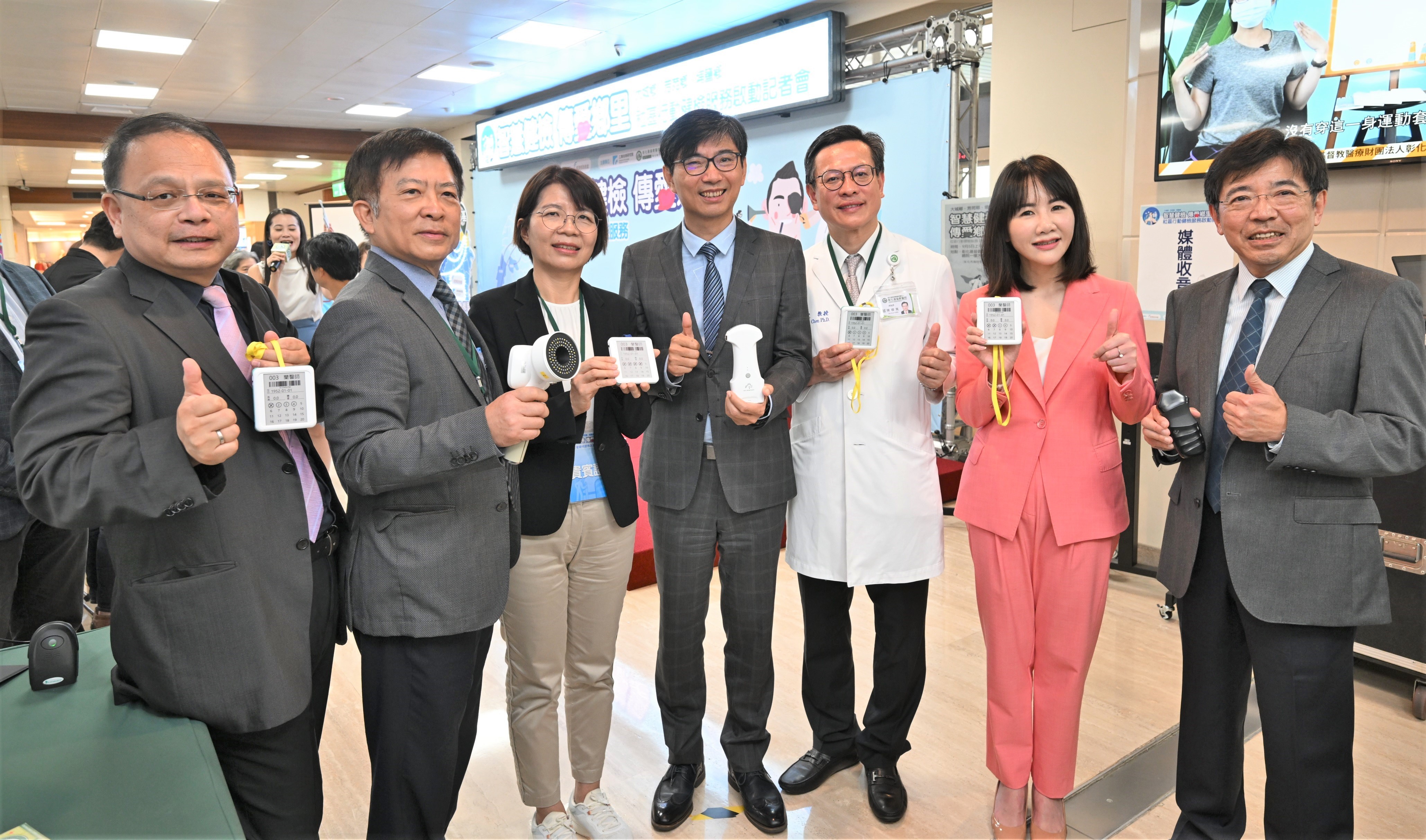 經濟部技術處處長邱求慧表示,本次經濟部與彰化基督教醫院合作,導入工研院及金屬中心兩個法人單位研發能量,並攜手5家業者開發了10項可攜式醫檢器材,包括仁寶「手持式超音波」、杏澤科技「牙菌斑診斷儀」、明達醫學的眼底鏡/眼壓機及創新醫電的心電圖儀,選定醫師病患比例較低的大城、芳苑、埔鹽三鄉鎮推動鄉鎮長者健檢,除可協助長者早期篩檢出疑似糖尿病、心血管疾病、肺癌和口腔癌的症狀,亦能整合不同時間、不同場域的檢測數據,提供遠距跨專科會診行動健檢服務,預計可提供超過5,000人次服務。