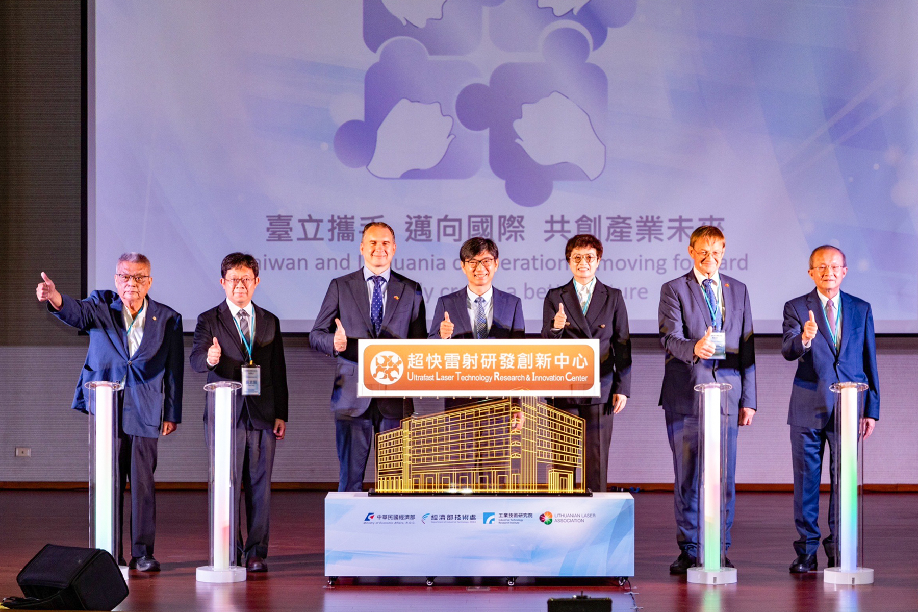 經濟部今(11)日在工研院臺南六甲院區啟用「超快雷射研發創新中心」,在經濟部技術處處長邱求慧、立陶宛貿易代表處代表盧思融(Paulius Lukauskas)、臺南市副市長趙卿惠、工研院資深技術專家吳志毅、立陶宛雷射協會會長Gediminas Račiukaitis、臺灣機械工業同業公會理事長魏燦文、台灣區電機電子工業同業公會副理事長廖伯熙等人見證下,攜手立陶宛雷射協會引進全球市占率最高、最先進的立陶宛飛秒雷射源,並集結14家立陶宛廠商,打造臺立超快雷射研發創新中心,未來將鎖定光電半導體、醫材及通訊等產業製程應用,助臺灣設備商搶攻30億元的「超快」商機。